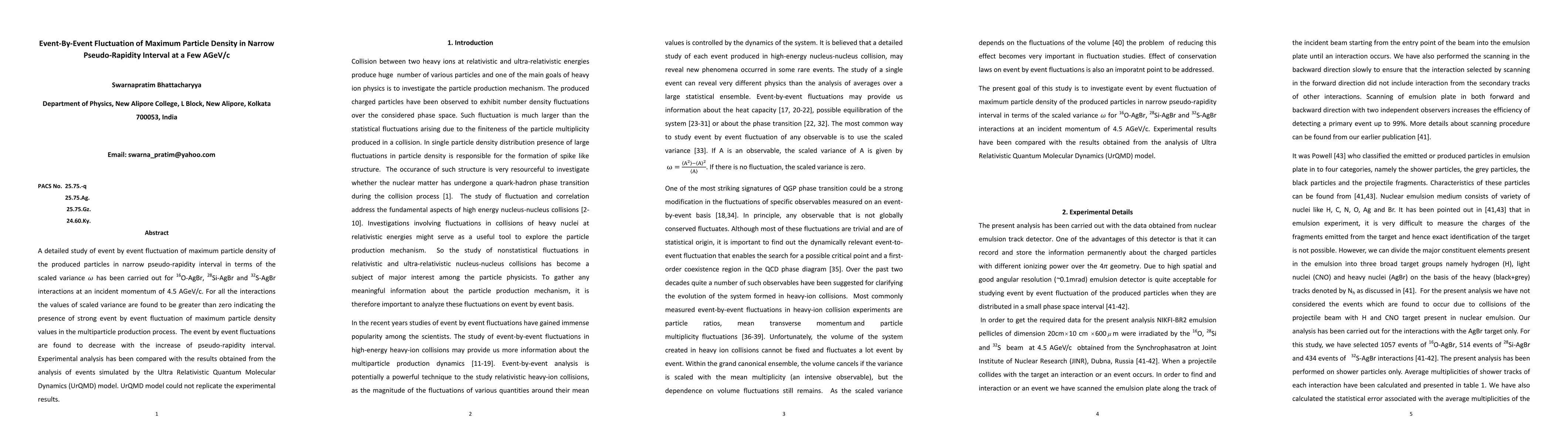A detailed study of event by event fluctuation of maximum particle density of the produced particles in narrow pseudo-rapidity interval in terms of the scaled variance {\omega} has been carried out for 16O-AgBr, 28Si-AgBr and 32S-AgBr interactions at an incident momentum of 4.5 AGeV/c. For all the interactions the values of scaled variance are found to be greater than zero indicating the presence of strong event by event fluctuation of maximum particle density values in the multiparticle production process. The event by event fluctuations are found to decrease with the increase of pseudo-rapidity interval. Experimental analysis has been compared with the results obtained from the analysis of events simulated by the Ultra Relativistic Quantum Molecular Dynamics (UrQMD) model. UrQMD model could not replicate the experimental results.