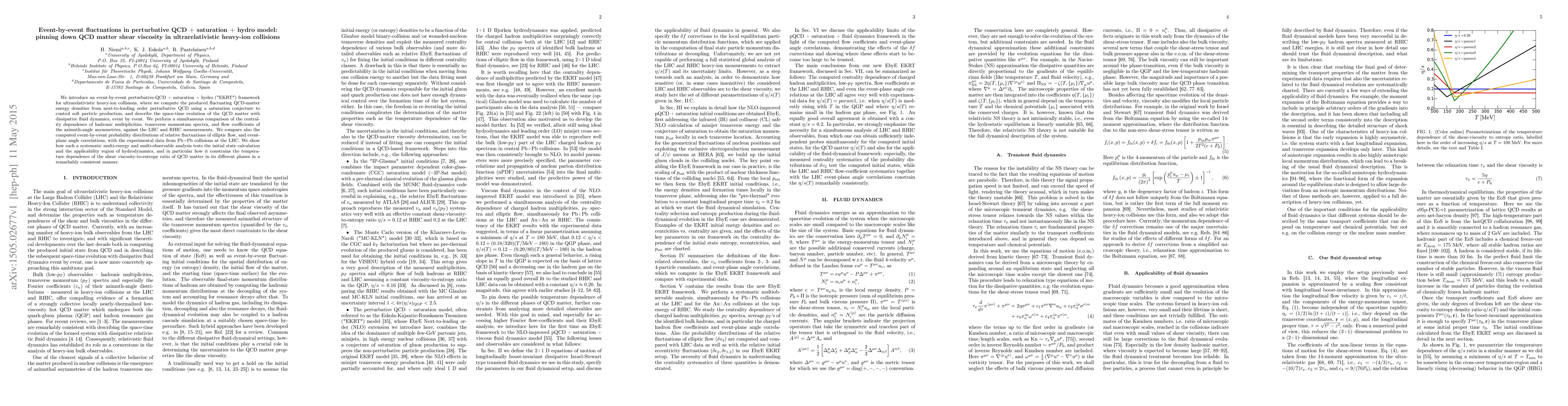 This paper introduces an event-by-event framework combining perturbative QCD, saturation, and hydrodynamics to analyze fluctuating QCD matter in heavy-ion collisions. It constrains the shear viscosity-to-entropy ratio of QCD matter by comparing theoretical predictions with experimental data from LHC and RHIC.