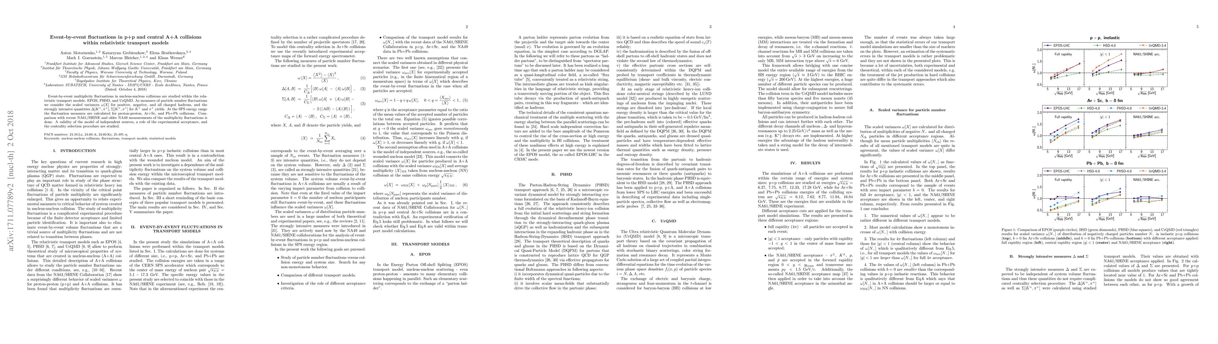 This paper investigates event-by-event multiplicity fluctuations in p+p and central A+A collisions using relativistic transport models (EPOS, PHSD, and UrQMD). It compares calculated fluctuation measures with NA61/SHINE and NA49 experimental data to assess the validity of independent source models and the impact of experimental acceptance and centrality selection.