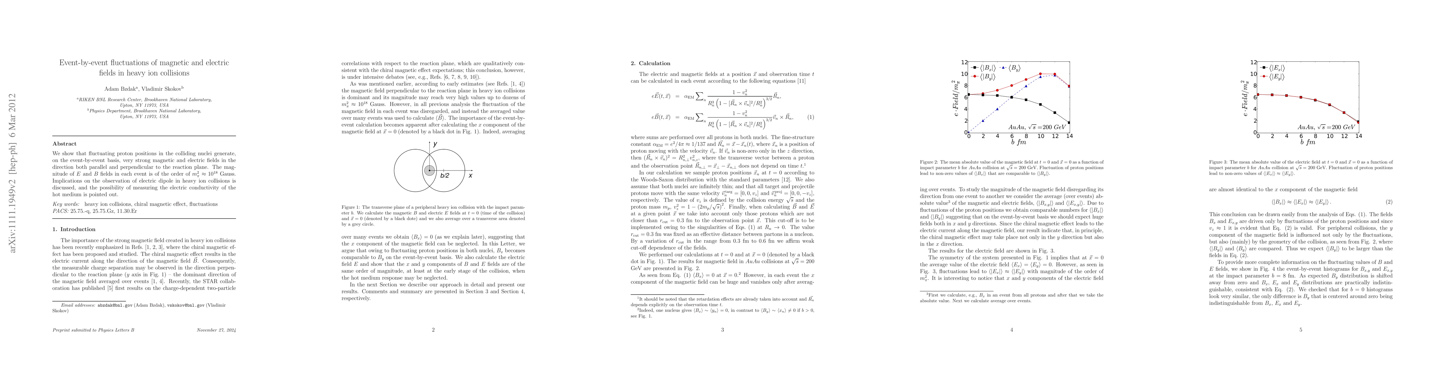 We show that fluctuating proton positions in the colliding nuclei generate, on the event-by-event basis, very strong magnetic and electric fields in the direction both parallel and perpendicular to the reaction plane. The magnitude of E and B fields in each event is of the order of m_pi^2 \approx 10^18 Gauss. Implications on the observation of electric dipole in heavy ion collisions is discussed, and the possibility of measuring the electric conductivity of the hot medium is pointed out.
