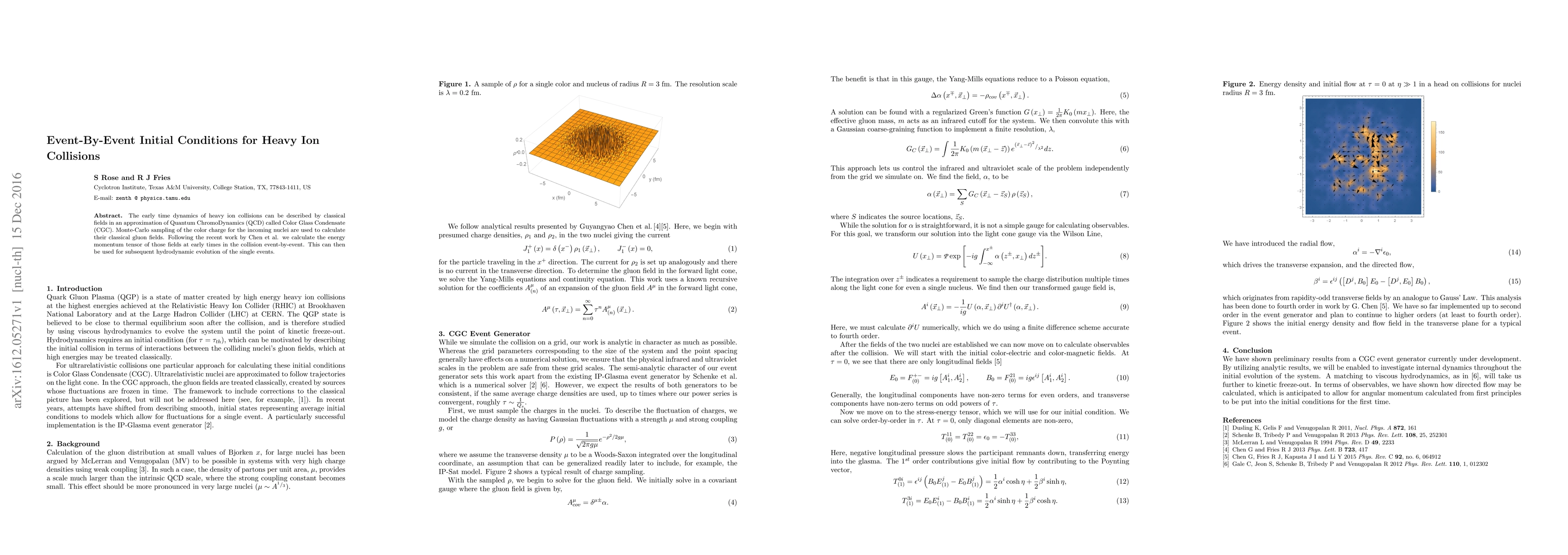 The early time dynamics of heavy ion collisions can be described by classical fields in an approximation of Quantum ChromoDynamics (QCD) called Color Glass Condensate (CGC). Monte-Carlo sampling of the color charge for the incoming nuclei are used to calculate their classical gluon fields. Following the recent work by Chen et al. we calculate the energy momentum tensor of those fields at early times in the collision event-by-event. This can then be used for subsequent hydrodynamic evolution of the single events.