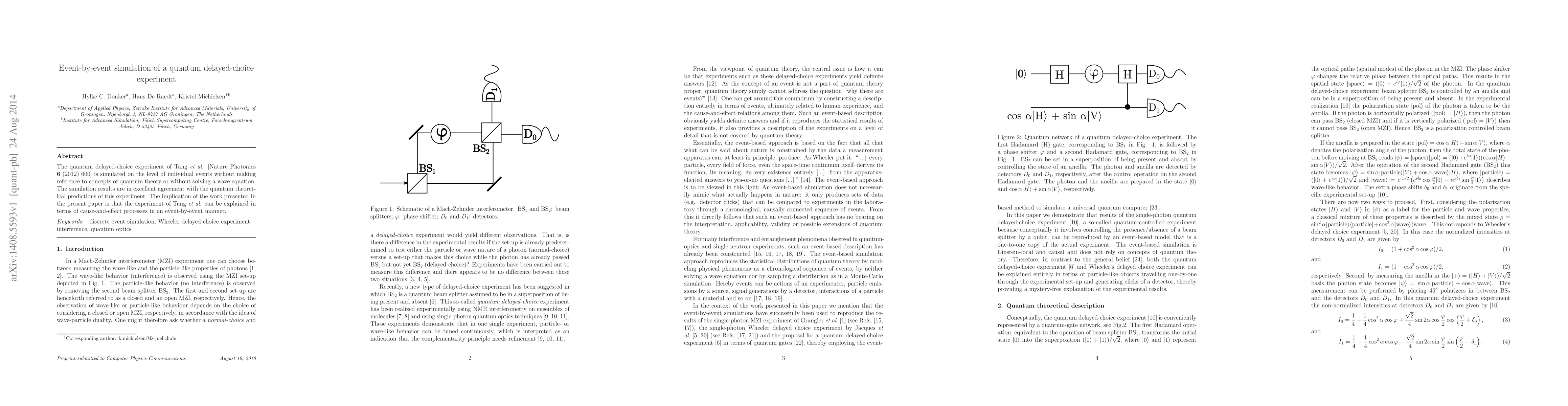 This paper simulates Tang et al.'s quantum delayed-choice experiment event-by-event without invoking quantum theory or wave equations, showing results that match quantum predictions, suggesting the experiment can be explained through cause-and-effect processes.