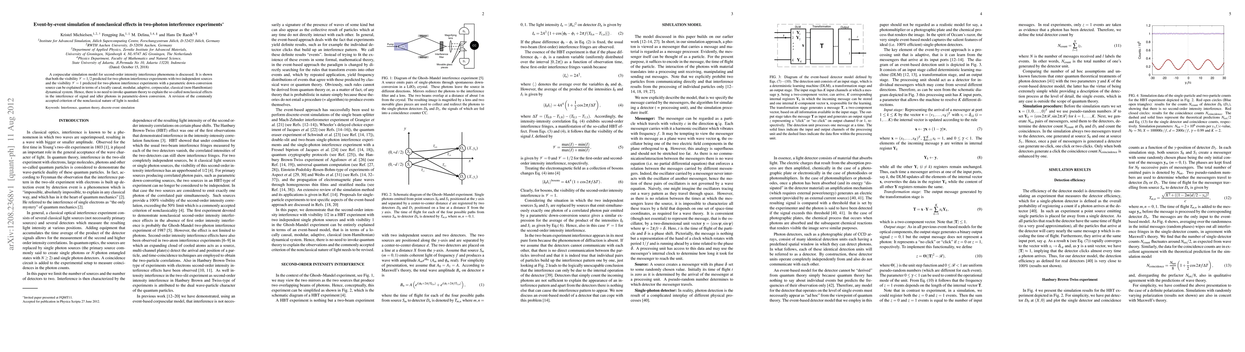 A corpuscular simulation model for second-order intensity interference phenomena is discussed. It is shown that both the visibility ${\cal V}=1/2$ predicted for two-photon interference experiments with two independent sources and the visibility ${\cal V}=1$ predicted for two-photon interference experiments with a parametric down-conversion source can be explained in terms of a locally causal, modular, adaptive, corpuscular, classical (non-Hamiltonian) dynamical system. Hence, there is no need to invoke quantum theory to explain the so-called nonclassical effects in the interference of signal and idler photons in parametric-down conversion. A revision of the commonly accepted criterion of the nonclassical nature of light is needed.