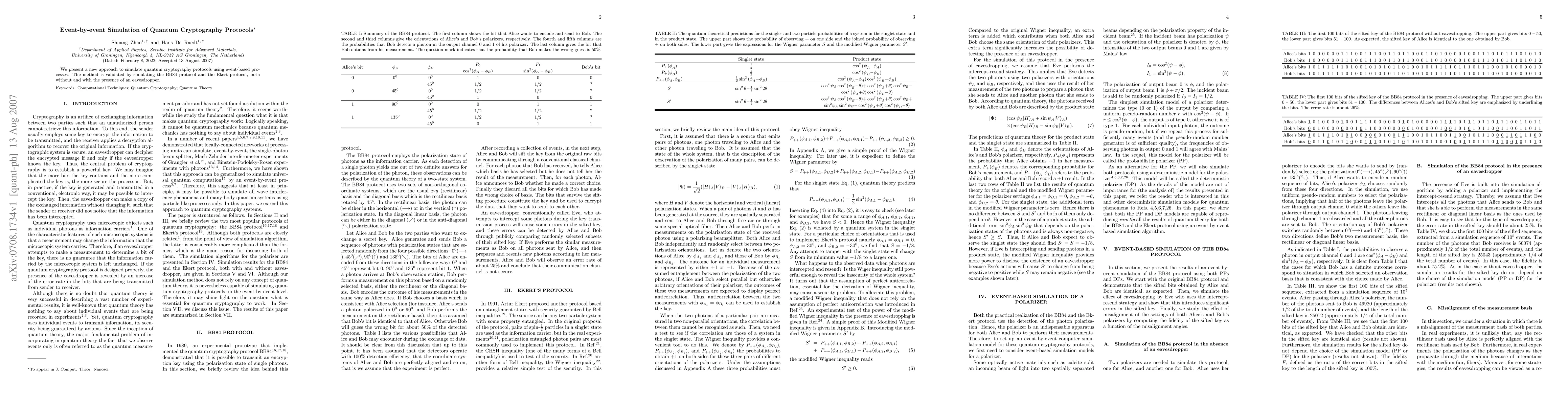This paper introduces an event-based simulation method for quantum cryptography protocols, validated through simulations of the BB84 and Ekert protocols, both with and without an eavesdropper, to assess security robustness.