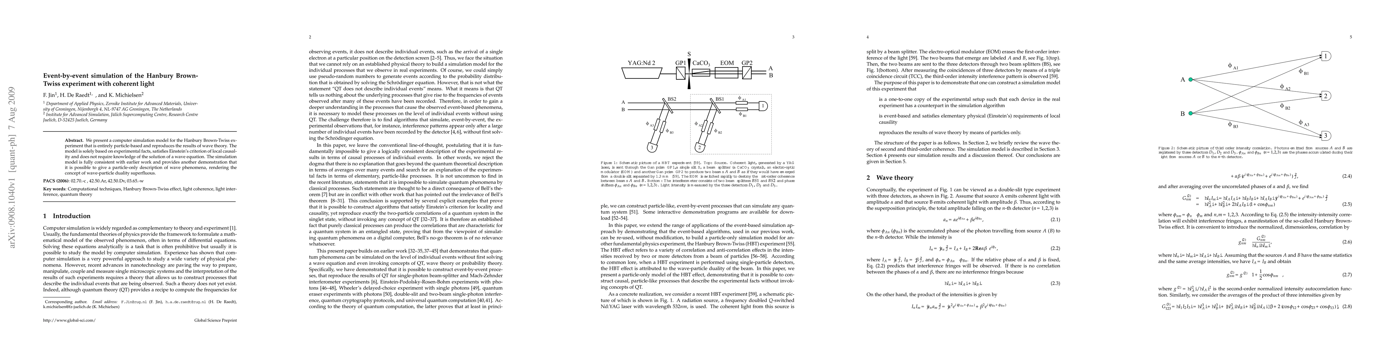 We present a computer simulation model for the Hanbury Brown-Twiss experiment that is entirely particle-based and reproduces the results of wave theory. The model is solely based on experimental facts, satisfies Einstein's criterion of local causality and does not require knowledge of the solution of a wave equation. The simulation model is fully consistent with earlier work and provides another demonstration that it is possible to give a particle-only description of wave phenomena, rendering the concept of wave-particle duality superfluous.