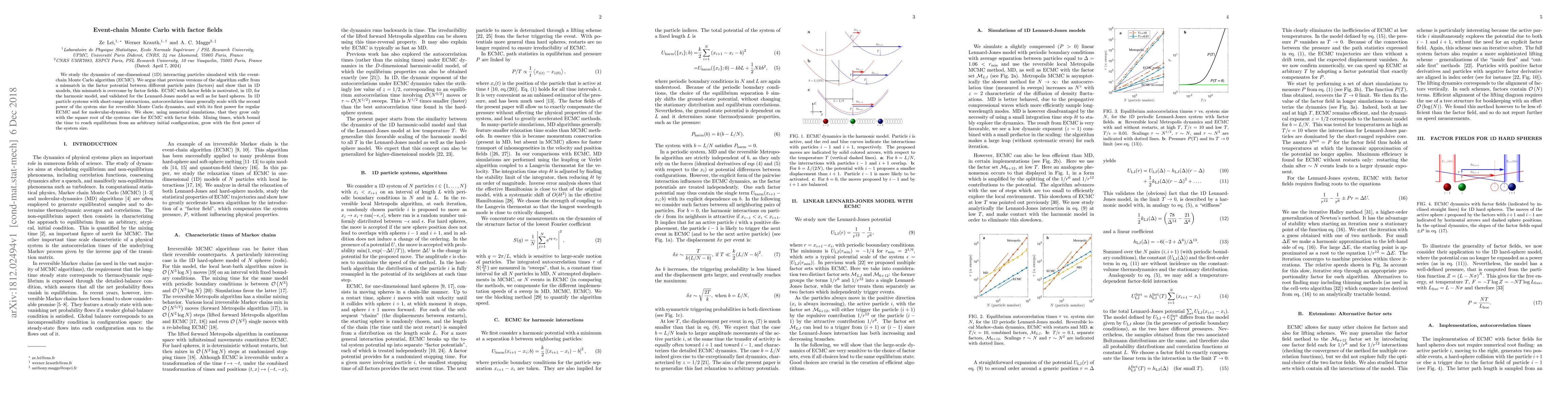 We study the dynamics of one-dimensional (1D) interacting particles simulated with the event-chain Monte Carlo algorithm (ECMC). We argue that previous versions of the algorithm suffer from a mismatch in the factor potential between different particle pairs (factors) and show that in 1D models, this mismatch is overcome by factor fields. ECMC with factor fields is motivated, in 1D, for the harmonic model, and validated for the Lennard-Jones model as well as for hard spheres. In 1D particle systems with short-range interactions, autocorrelation times generally scale with the second power of the system size for reversible Monte Carlo dynamics, and with its first power for regular ECMC and for molecular-dynamics. We show, using numerical simulations, that they grow only with the square root of the systems size for ECMC with factor fields. Mixing times, which bound the time to reach equilibrium from an arbitrary initial configuration, grow with the first power of the system size.