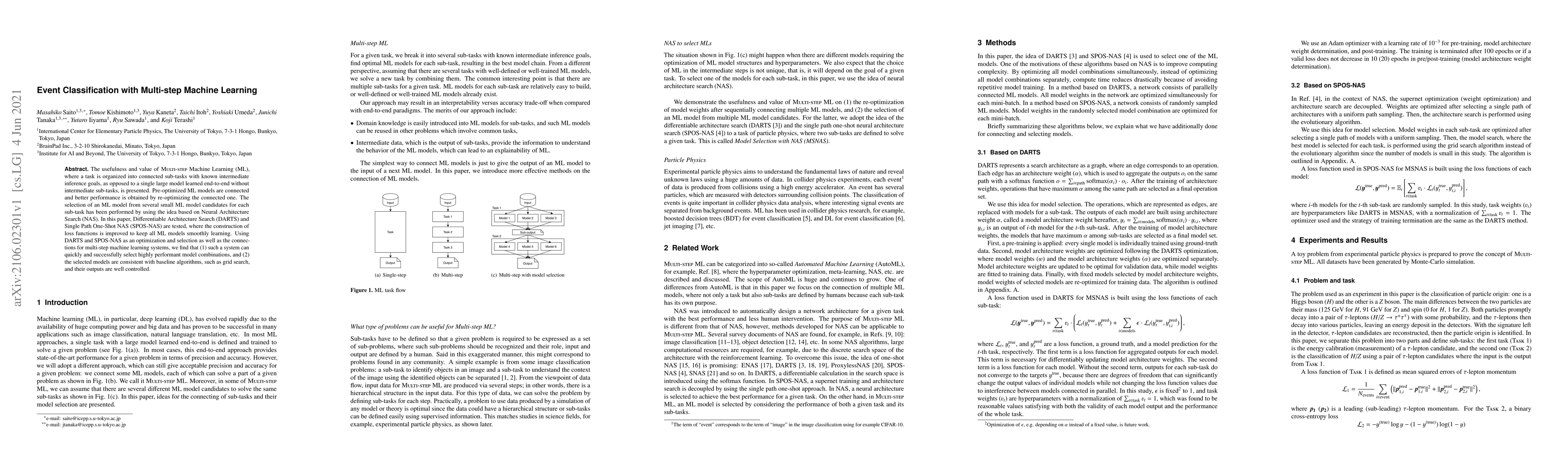 The usefulness and value of Multi-step Machine Learning (ML), where a task is organized into connected sub-tasks with known intermediate inference goals, as opposed to a single large model learned end-to-end without intermediate sub-tasks, is presented. Pre-optimized ML models are connected and better performance is obtained by re-optimizing the connected one. The selection of an ML model from several small ML model candidates for each sub-task has been performed by using the idea based on Neural Architecture Search (NAS). In this paper, Differentiable Architecture Search (DARTS) and Single Path One-Shot NAS (SPOS-NAS) are tested, where the construction of loss functions is improved to keep all ML models smoothly learning. Using DARTS and SPOS-NAS as an optimization and selection as well as the connections for multi-step machine learning systems, we find that (1) such a system can quickly and successfully select highly performant model combinations, and (2) the selected models are consistent with baseline algorithms, such as grid search, and their outputs are well controlled.