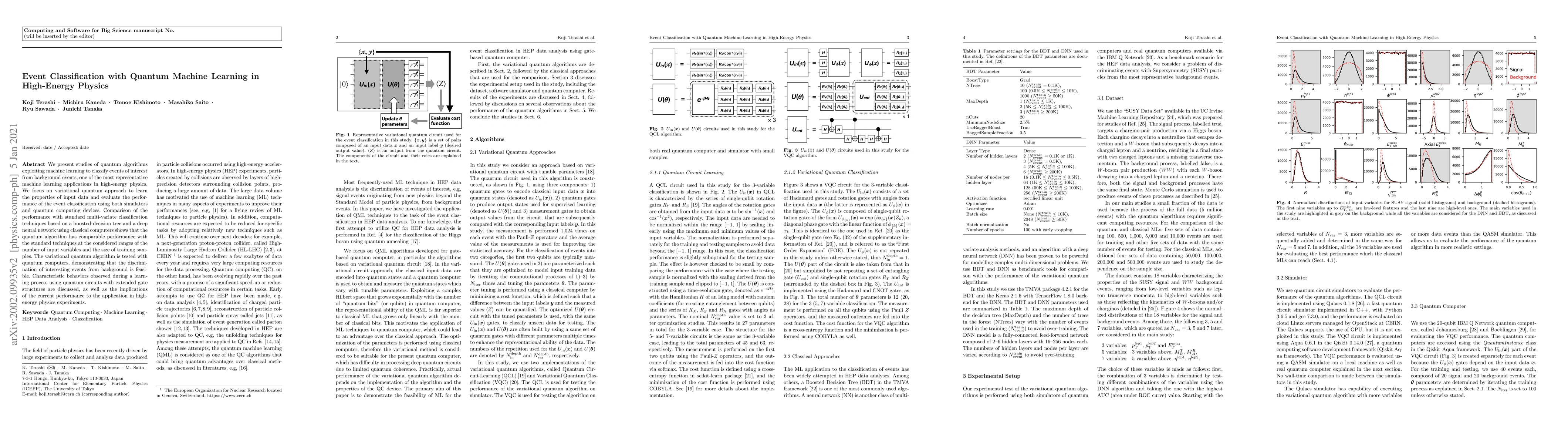 This research explores quantum machine learning algorithms to classify high-energy physics events, demonstrating comparable performance to standard techniques. Using variational quantum approaches, the study tests quantum computers and discusses the implications for event discrimination in high-energy physics experiments.