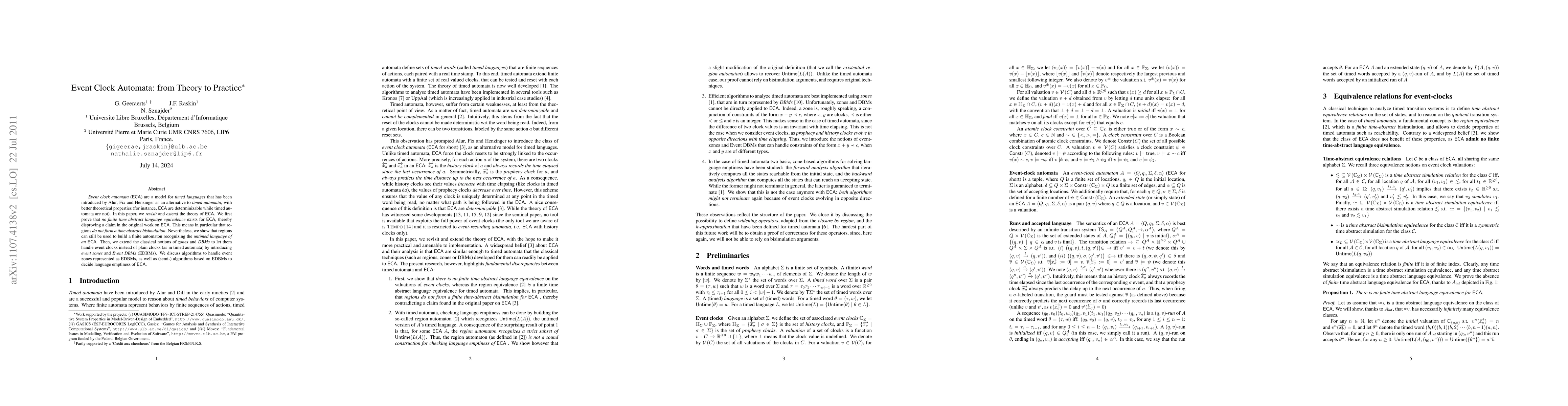 This paper extends the theory of event clock automata (ECA), proving that no finite time abstract language equivalence exists for ECA, and introduces event zones and Event DBMs (EDBMs) to handle event clocks, providing algorithms for language emptiness decision.