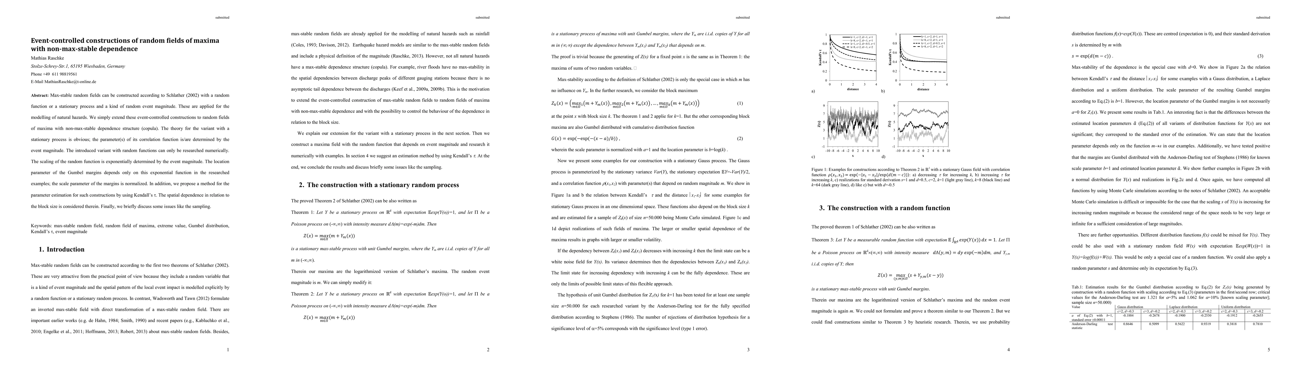 This paper extends event-controlled constructions of max-stable random fields to random fields of maxima with non-max-stable dependence, proposing a method for parameter estimation using Kendall's tau and discussing spatial dependence and sampling issues.