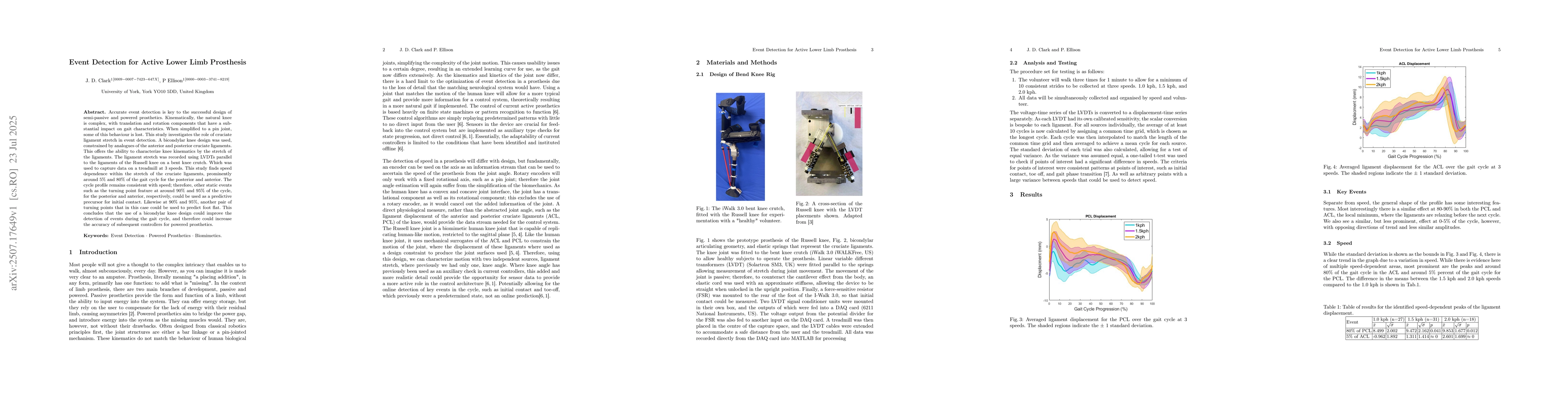 Accurate event detection is key to the successful design of semi-passive and powered prosthetics. Kinematically, the natural knee is complex, with translation and rotation components that have a substantial impact on gait characteristics. When simplified to a pin joint, some of this behaviour is lost. This study investigates the role of cruciate ligament stretch in event detection. A bicondylar knee design was used, constrained by analogues of the anterior and posterior cruciate ligaments. This offers the ability to characterize knee kinematics by the stretch of the ligaments. The ligament stretch was recorded using LVDTs parallel to the ligaments of the Russell knee on a bent knee crutch. Which was used to capture data on a treadmill at 3 speeds. This study finds speed dependence within the stretch of the cruciate ligaments, prominently around 5\% and 80\% of the gait cycle for the posterior and anterior. The cycle profile remains consistent with speed; therefore, other static events such as the turning point feature at around 90\% and 95\% of the cycle, for the posterior and anterior, respectively, could be used as a predictive precursor for initial contact. Likewise at 90\% and 95\%, another pair of turning points that in this case could be used to predict foot flat. This concludes that the use of a bicondylar knee design could improve the detection of events during the gait cycle, and therefore could increase the accuracy of subsequent controllers for powered prosthetics.
