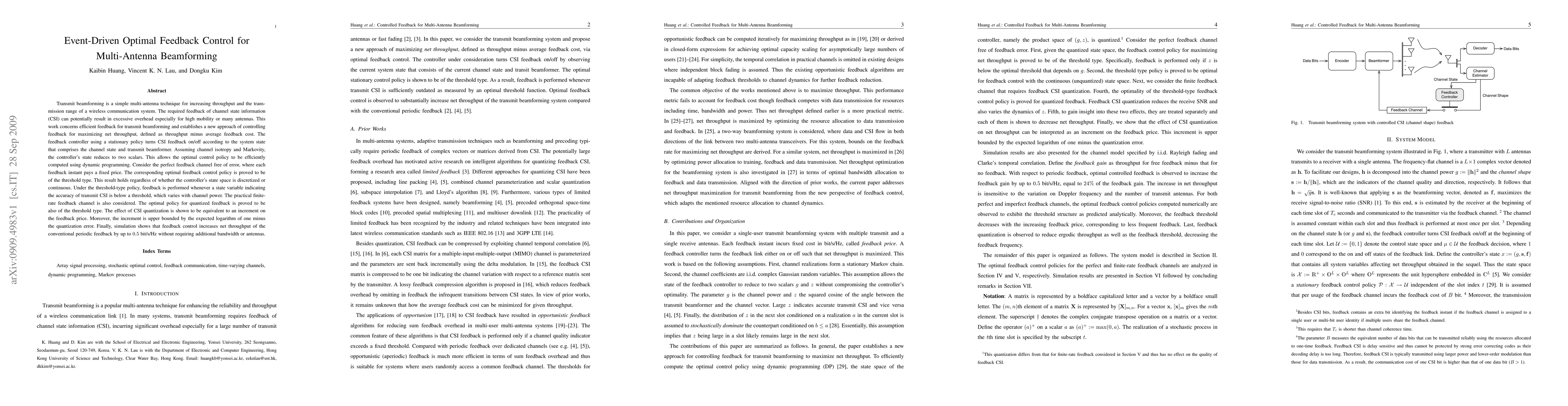 This paper proposes an event-driven optimal feedback control strategy for multi-antenna beamforming to maximize net throughput, defined as throughput minus feedback cost. The optimal control policy is of the threshold type, with feedback triggered when CSI accuracy falls below a threshold, which varies with channel power.