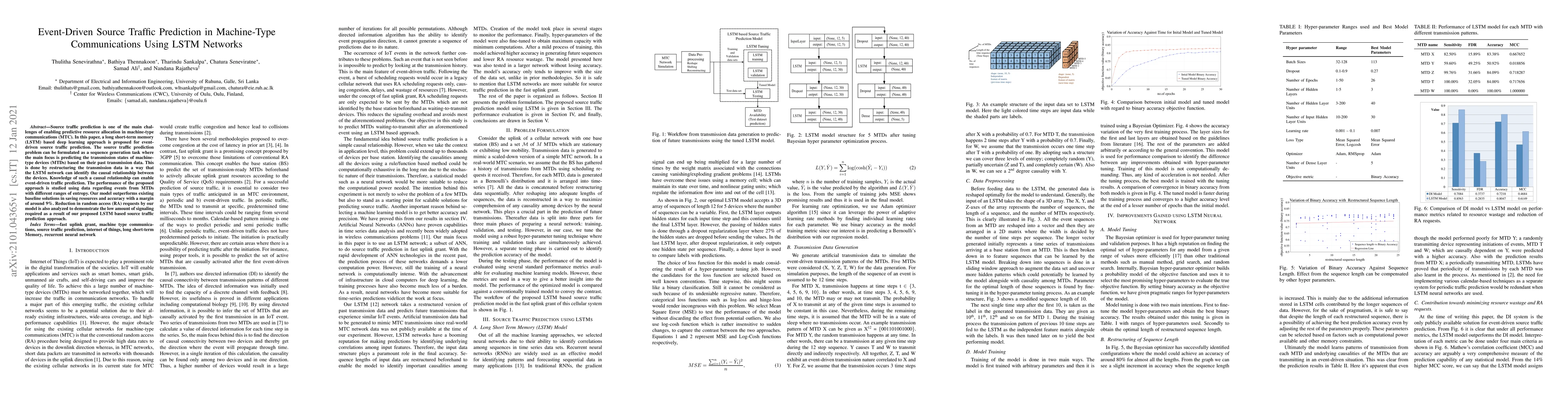 Source traffic prediction is one of the main challenges of enabling predictive resource allocation in machine type communications (MTC). In this paper, a Long Short-Term Memory (LSTM) based deep learning approach is proposed for event-driven source traffic prediction. The source traffic prediction problem can be formulated as a sequence generation task where the main focus is predicting the transmission states of machine-type devices (MTDs) based on their past transmission data. This is done by restructuring the transmission data in a way that the LSTM network can identify the causal relationship between the devices. Knowledge of such a causal relationship can enable event-driven traffic prediction. The performance of the proposed approach is studied using data regarding events from MTDs with different ranges of entropy. Our model outperforms existing baseline solutions in saving resources and accuracy with a margin of around 9%. Reduction in Random Access (RA) requests by our model is also analyzed to demonstrate the low amount of signaling required as a result of our proposed LSTM based source traffic prediction approach.