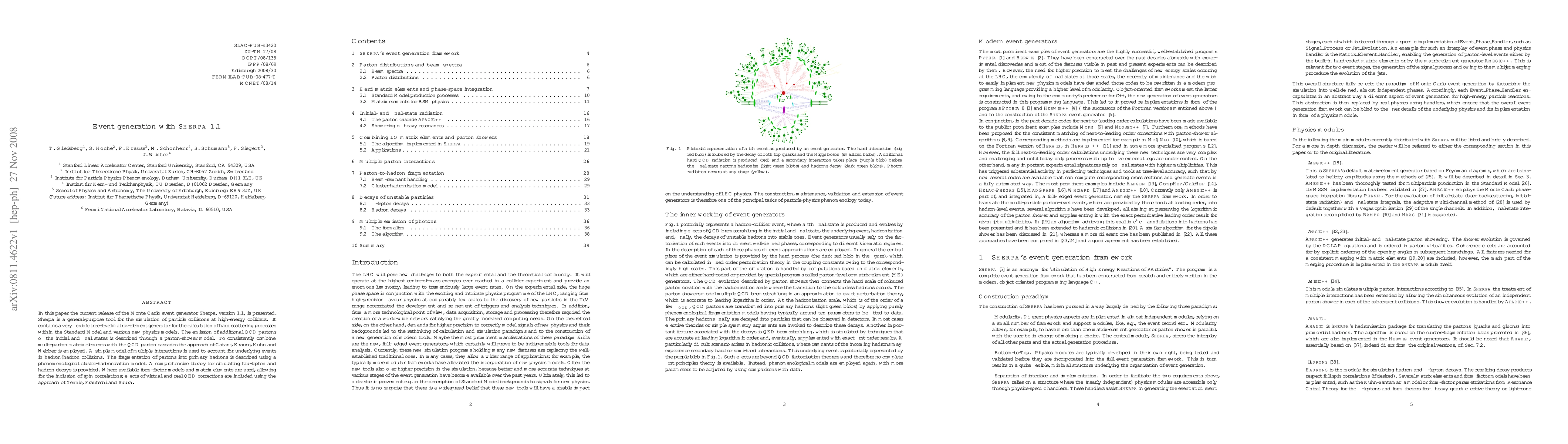 This paper introduces Sherpa 1.1, a versatile Monte Carlo event generator for high-energy particle collision simulations. It details a matrix-element generator, parton-shower model, and a cluster-hadronisation model for fragmentation, alongside a decay library for tau-leptons and hadrons, incorporating spin correlations and QED effects.