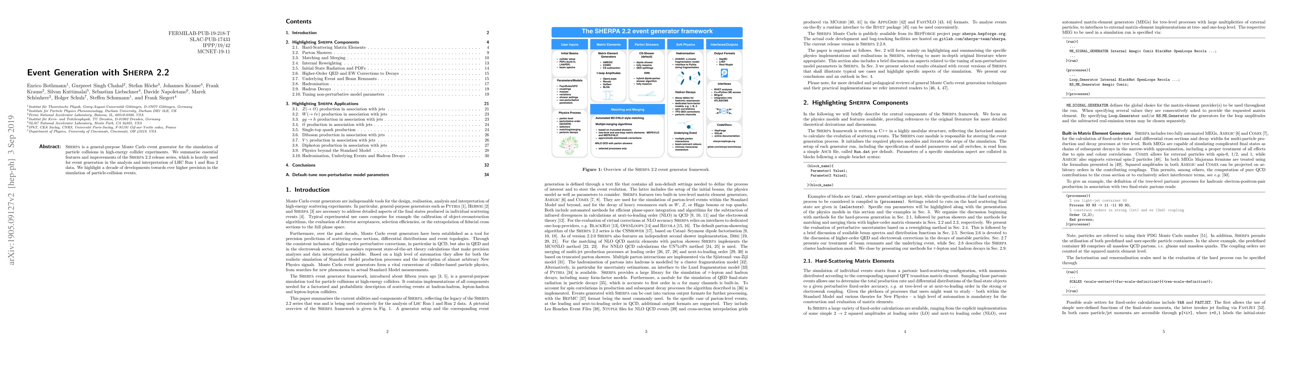 The research presents a comprehensive update and application of Sherpa 2.2, highlighting its advancements and versatility in simulating various particle collision processes, setting it apart as a state-of-the-art tool in high-energy physics event generation.