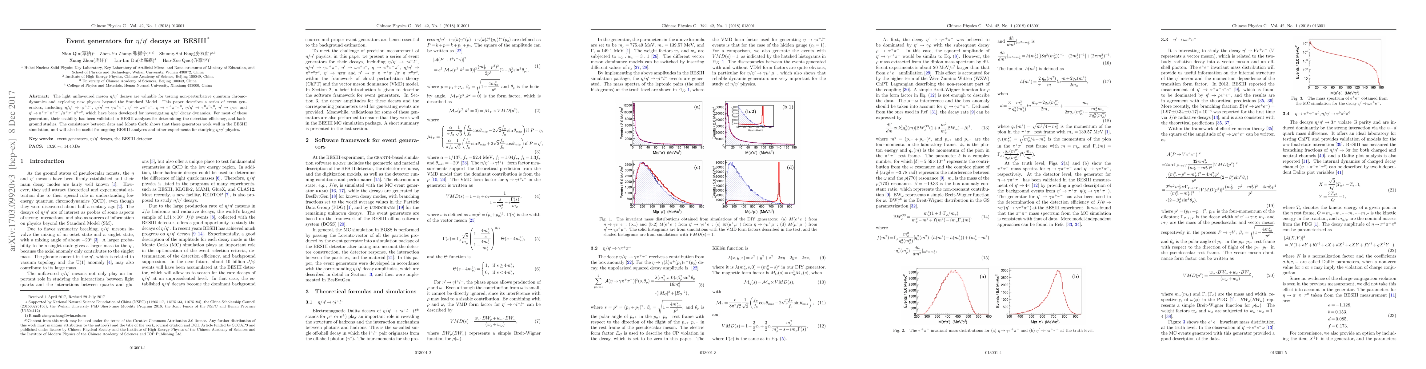 This paper presents event generators for various $\eta/\eta^{\prime}$ decay channels to investigate their dynamics, validated for use in BESIII analyses, demonstrating good consistency between data and Monte Carlo simulations. These tools will aid ongoing BESIII studies and other experiments in exploring $\eta/\eta^{\prime}$ physics.