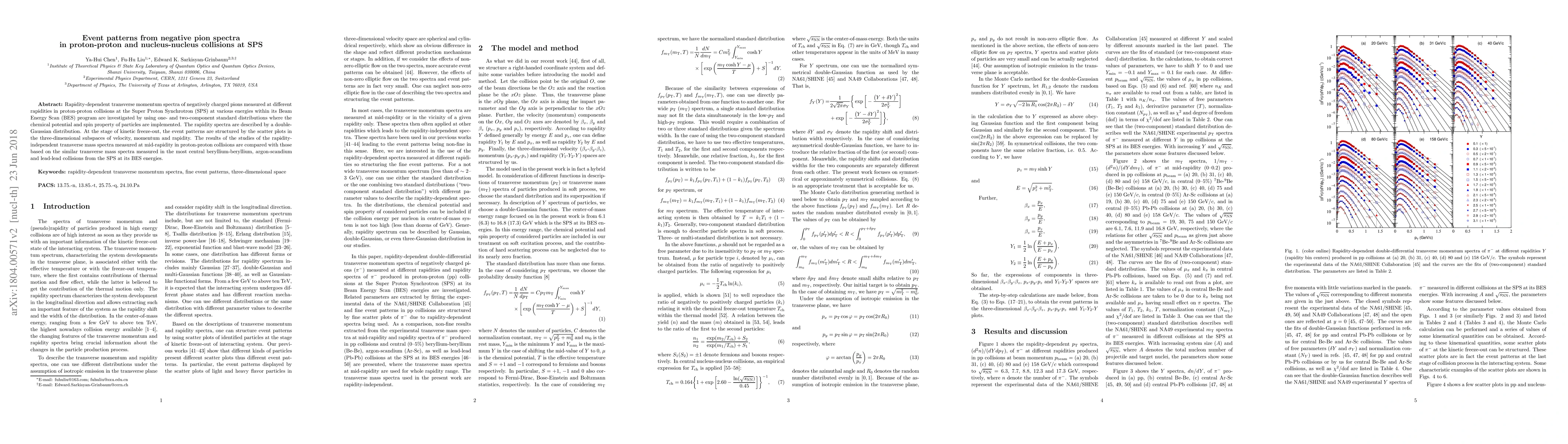 Rapidity-dependent transverse momentum spectra of negatively charged pions measured at different rapidities in proton-proton collisions at the Super Proton Synchrotron (SPS) at various energies within its Beam Energy Scan (BES) program are investigated by using one- and two-component standard distributions where the chemical potential and spin property of particles are implemented. The rapidity spectra are described by a double-Gaussian distribution. At the stage of kinetic freeze-out, the event patterns are structured by the scatter plots in the three-dimensional subspaces of velocity, momentum and rapidity. The results of the studies of the rapidity-independent transverse mass spectra measured at mid-rapidity in proton-proton collisions are compared with those based on the similar transverse mass spectra measured in the most central beryllium-beryllium, argon-scandium and lead-lead collisions from the SPS at its BES energies.