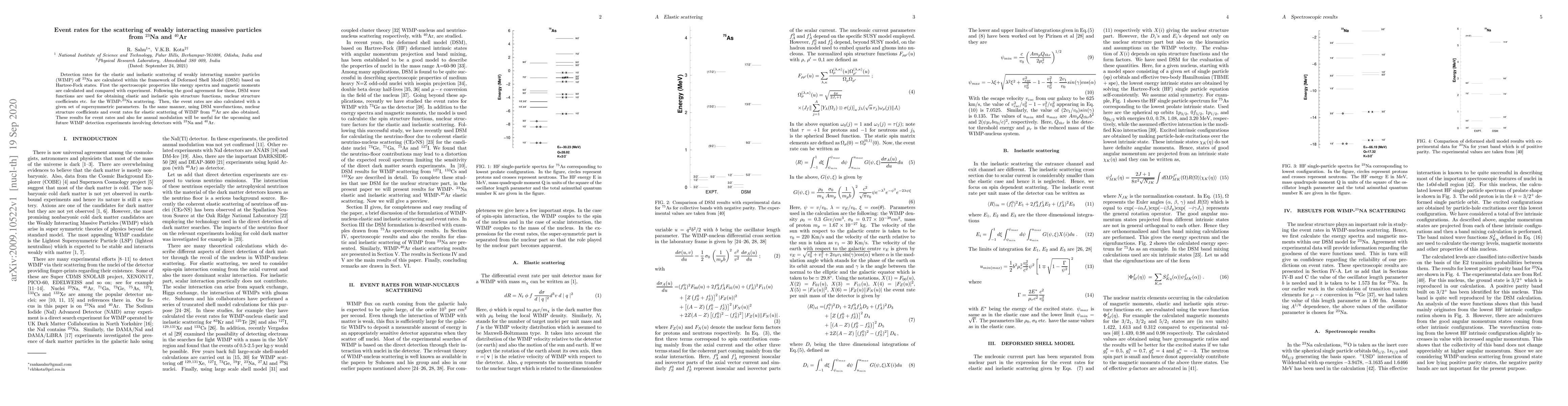 Detection rates for the elastic and inelastic scattering of weakly interacting massive particles (WIMP) off $^{23}$Na are calculated within the framework of Deformed Shell Model (DSM) based on Hartree-Fock states. First the spectroscopic properties like energy spectra and magnetic moments are calculated and compared with experiment. Following the good agreement for these, DSM wave functions are used for obtaining elastic and inelastic spin structure functions, nuclear structure coefficients etc. for the WIMP-$^{23}$Na scattering. Then, the event rates are also calculated with a given set of supersymmetric parameters. In the same manner, using DSM wavefunctions, nuclear structure coefficients and event rates for elastic scattering of WIMP from $^{40}$Ar are also obtained. These results for event rates and also for annual modulation will be useful for the upcoming and future WIMP detection experiments involving detectors with $^{23}$Na and $^{40}$Ar.