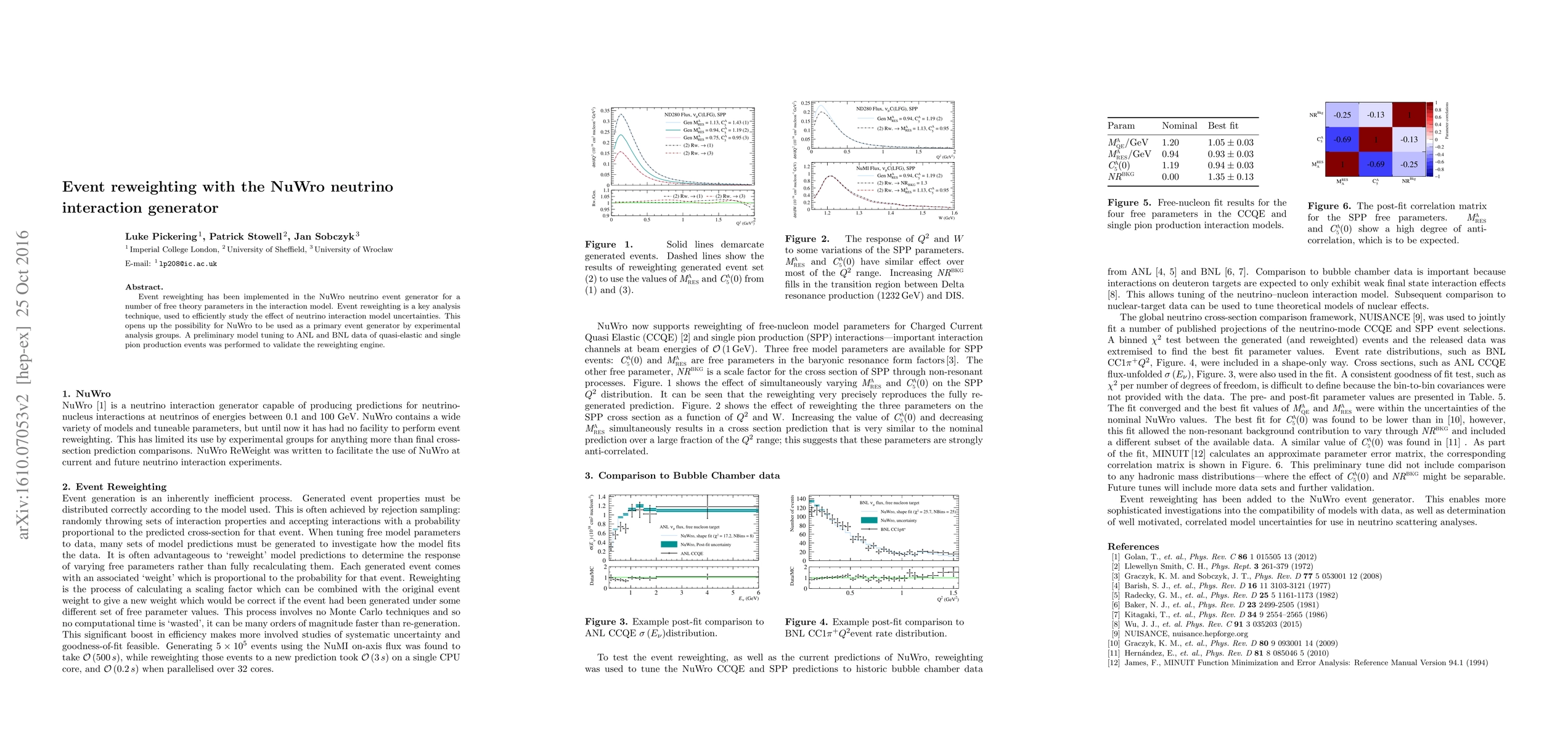 The NuWro neutrino event generator now incorporates event reweighting for various free parameters in its interaction model, enabling efficient study of model uncertainties. Preliminary tuning using ANL and BNL data for quasi-elastic and single pion events validates the reweighting technique, enhancing NuWro's utility for experimental analysis.