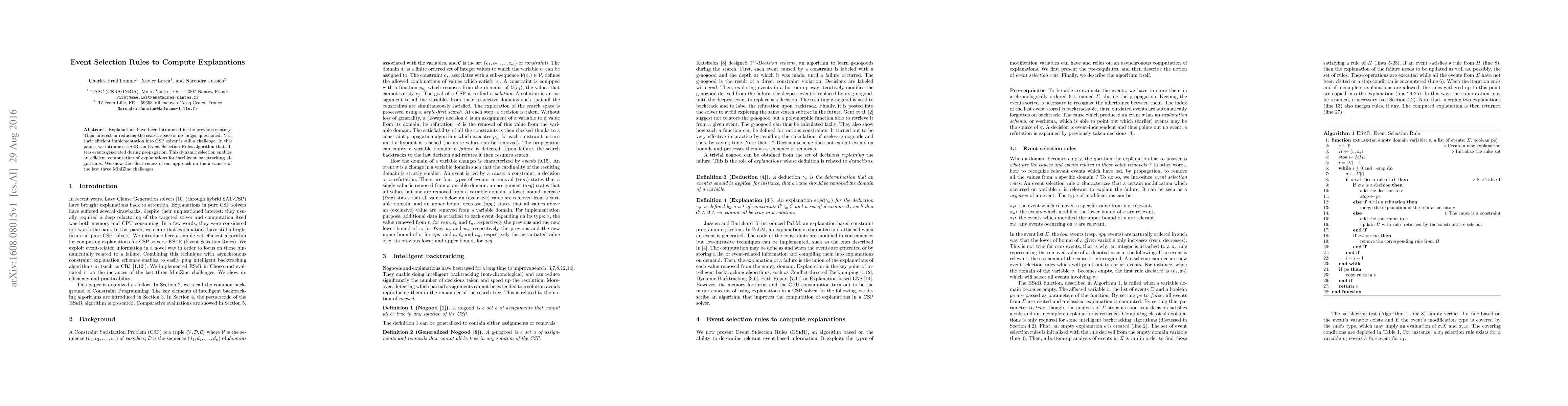 Explanations have been introduced in the previous century. Their interest in reducing the search space is no longer questioned. Yet, their efficient implementation into CSP solver is still a challenge. In this paper, we introduce ESeR, an Event Selection Rules algorithm that filters events generated during propagation. This dynamic selection enables an efficient computation of explanations for intelligent backtracking al- gorithms. We show the effectiveness of our approach on the instances of the last three MiniZinc challenges