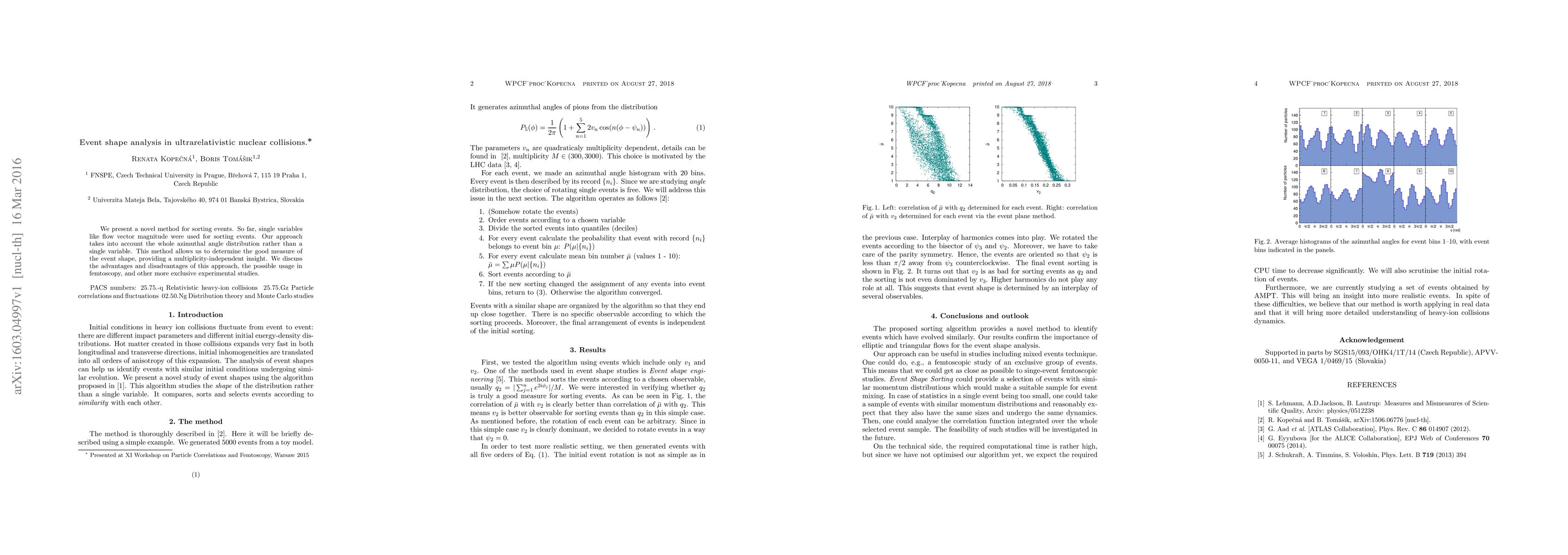 We present a novel method for sorting events. So far, single variables like flow vector magnitude were used for sorting events. Our approach takes into account the whole azimuthal angle distribution rather than a single variable. This method allows us to determine the good measure of the event shape, providing a multiplicity-independent insight. We discuss the advantages and disadvantages of this approach, the possible usage in femtoscopy, and other more exclusive experimental studies.