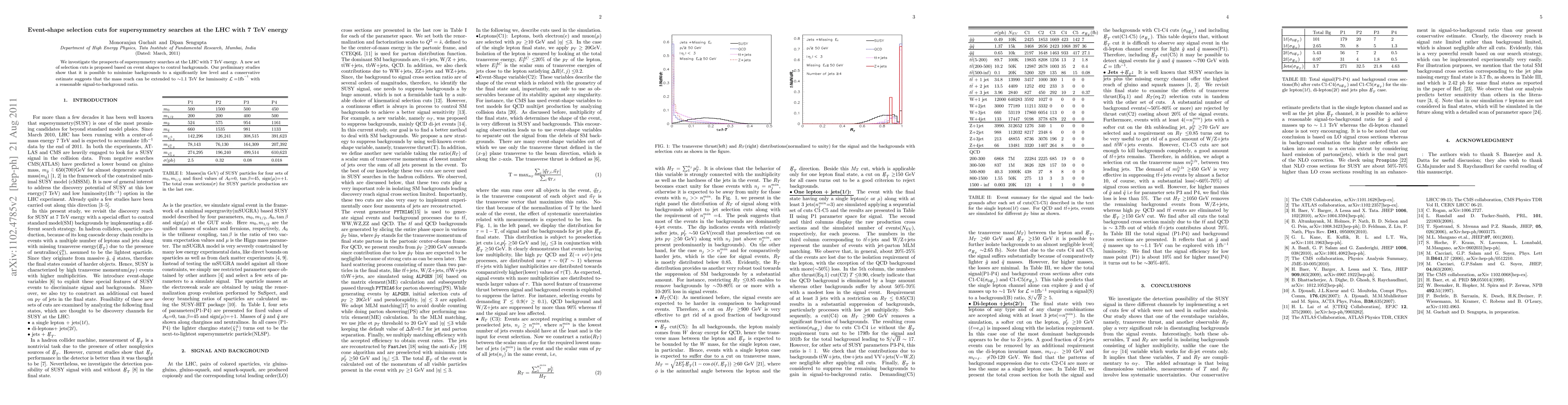 A new set of selection cuts is proposed based on event shapes to control backgrounds.