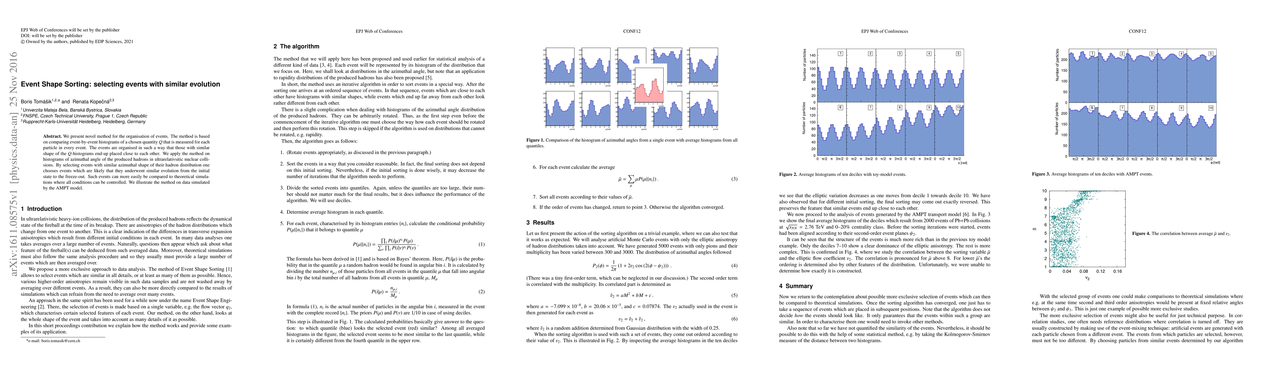 Researchers developed a method to organize events in particle collisions based on their evolutionary paths, allowing for more controlled comparisons with theoretical simulations. By analyzing event-by-event histograms, they identified similar patterns in hadron distributions and grouped corresponding events together.