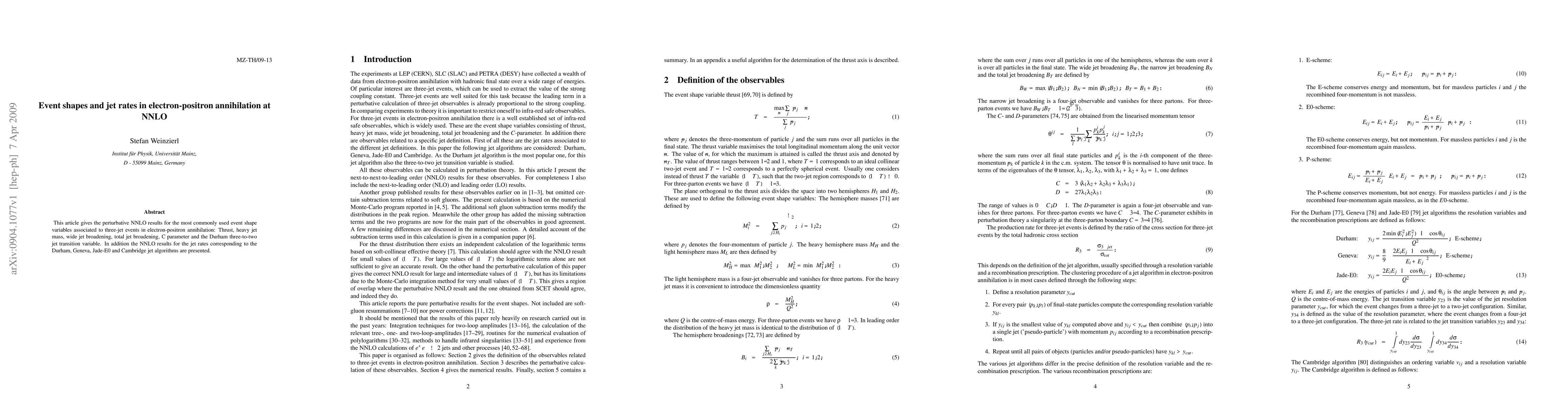 This article presents perturbative NNLO results for six event shape variables in electron-positron annihilation three-jet events, including Thrust and jet broadening metrics. It also provides NNLO jet rates for four distinct jet algorithms, enhancing precision in jet event analysis.