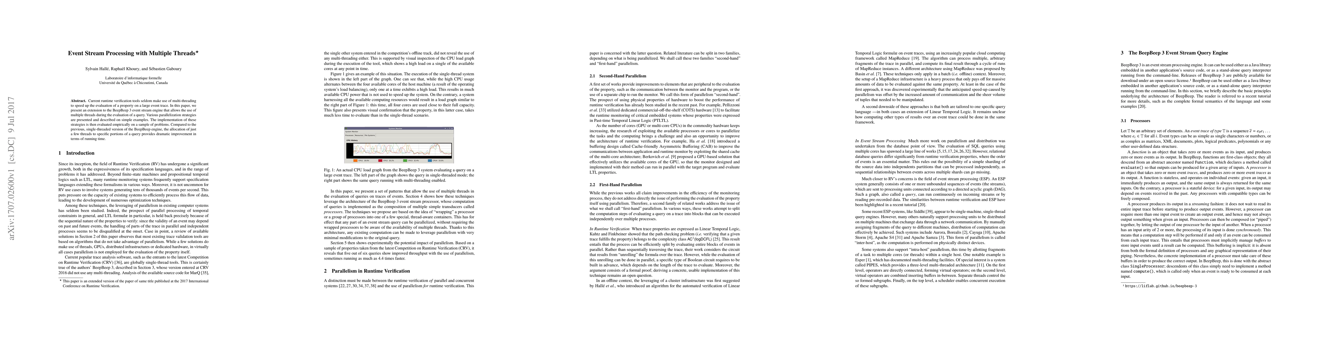 This paper extends the BeepBeep 3 event stream engine to utilize multiple threads for query evaluation, presenting various parallelization strategies and evaluating their performance. The results show significant improvements in running time compared to the single-threaded version.