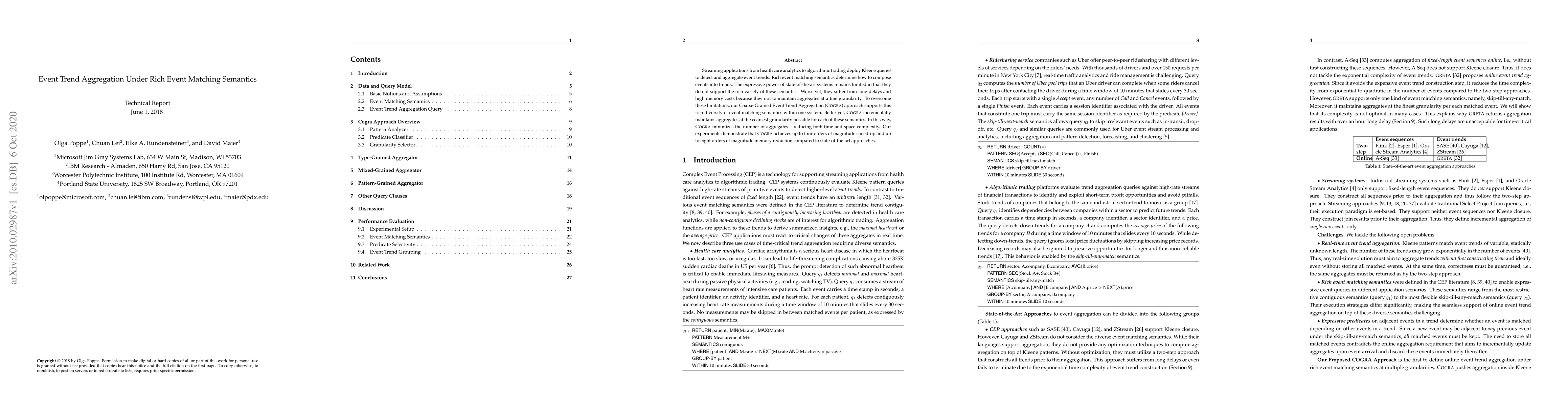 A new approach called Coarse-Grained Event Trend Aggregation (Cogra) minimizes time and space complexity in event trend aggregation, achieving up to four orders of magnitude speed-up and eight orders of magnitude memory reduction.