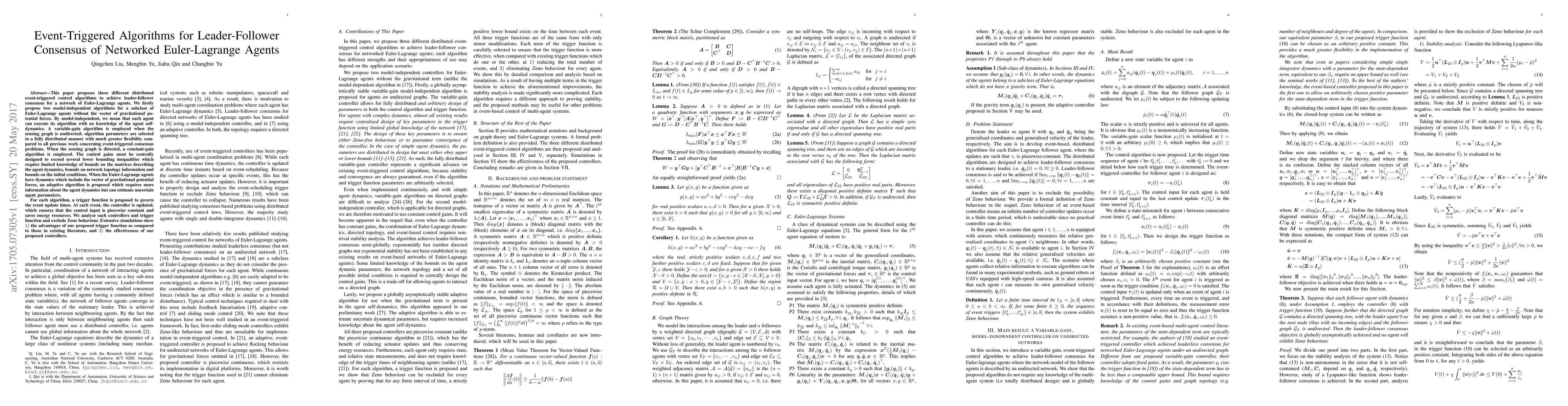 This paper proposes three event-triggered control algorithms for leader-follower consensus in a network of Euler-Lagrange agents, offering improved flexibility and energy efficiency compared to existing methods.