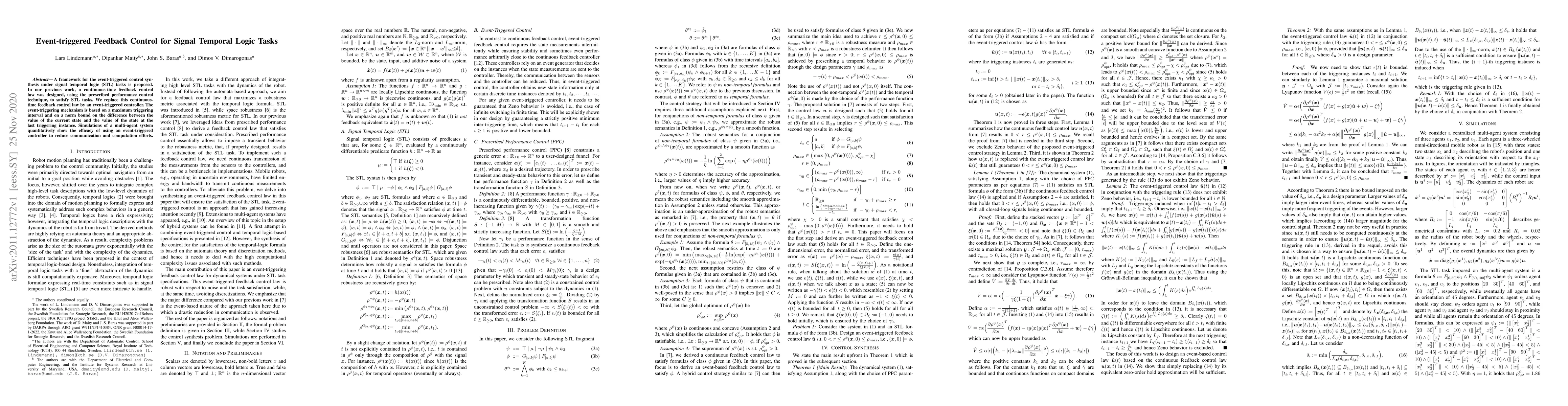 This paper proposes an event-triggered control framework for signal temporal logic tasks, replacing continuous-time control with a more efficient event-triggered controller to reduce communication and computation costs, demonstrated through simulations of a multi-agent system.