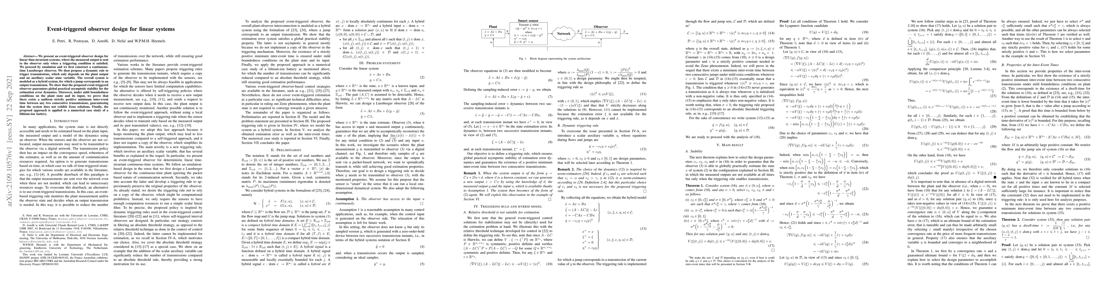 The research presents an event-triggered observer design for linear time-invariant systems, utilizing a hybrid system model where transmissions correspond to jumps. A continuous-time Luenberger observer is constructed, followed by a dynamic triggering rule based on the plant output and an auxiliary scalar state variable.