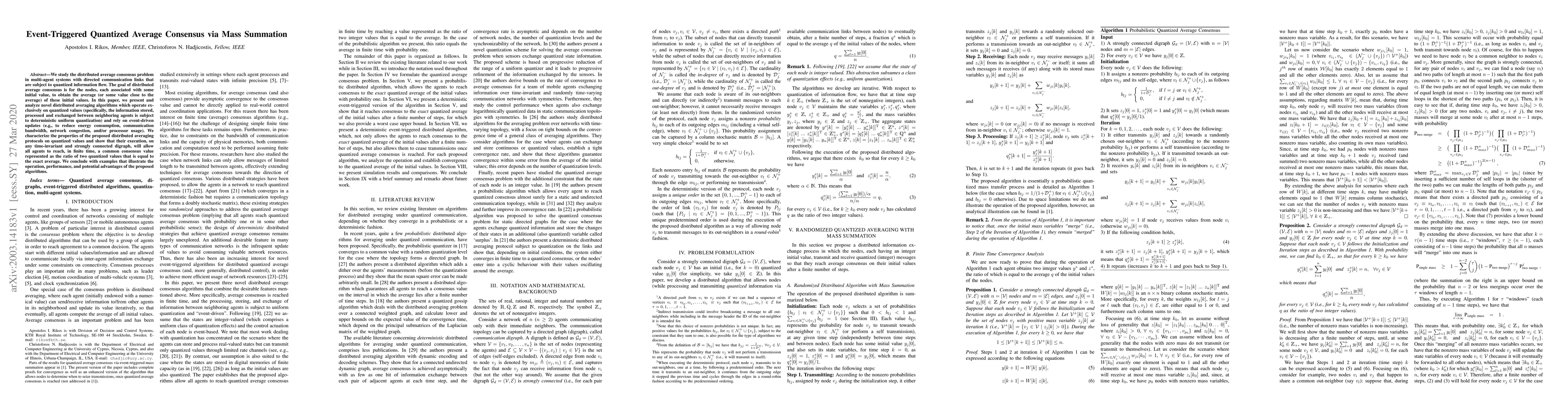 This paper proposes novel event-triggered distributed averaging algorithms for multi-agent systems with quantized information flow, achieving consensus on the exact average of initial values through quantized updates. The algorithms reduce energy and communication costs while ensuring all agents reach a consensus value in finite time.