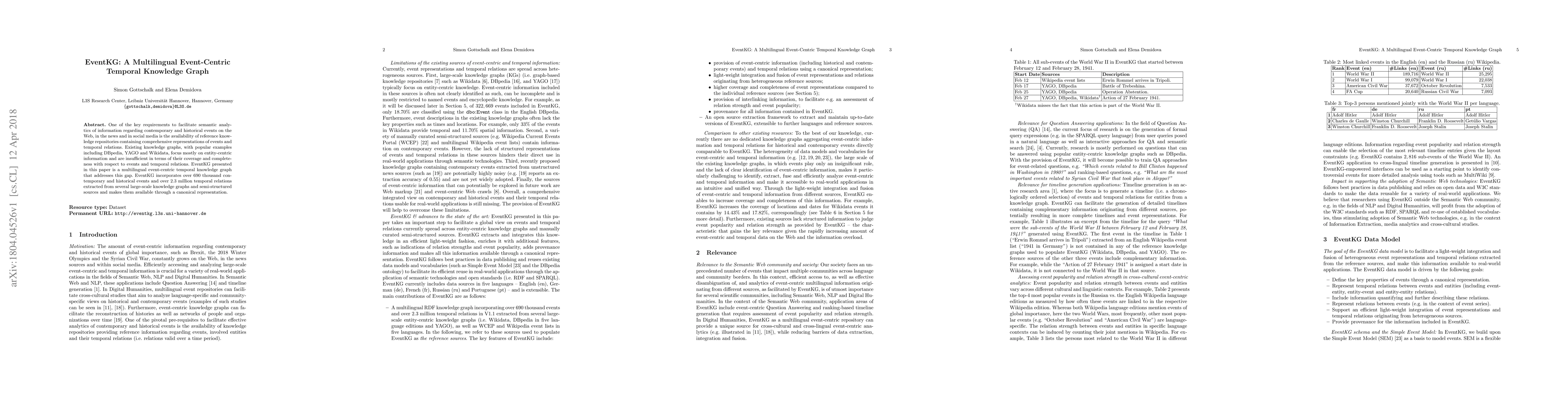 EventKG is a multilingual event-centric temporal knowledge graph that addresses the insufficiency of existing knowledge graphs in event and temporal relation coverage. It incorporates over 690 thousand events and 2.3 million temporal relations for comprehensive semantic analytics.