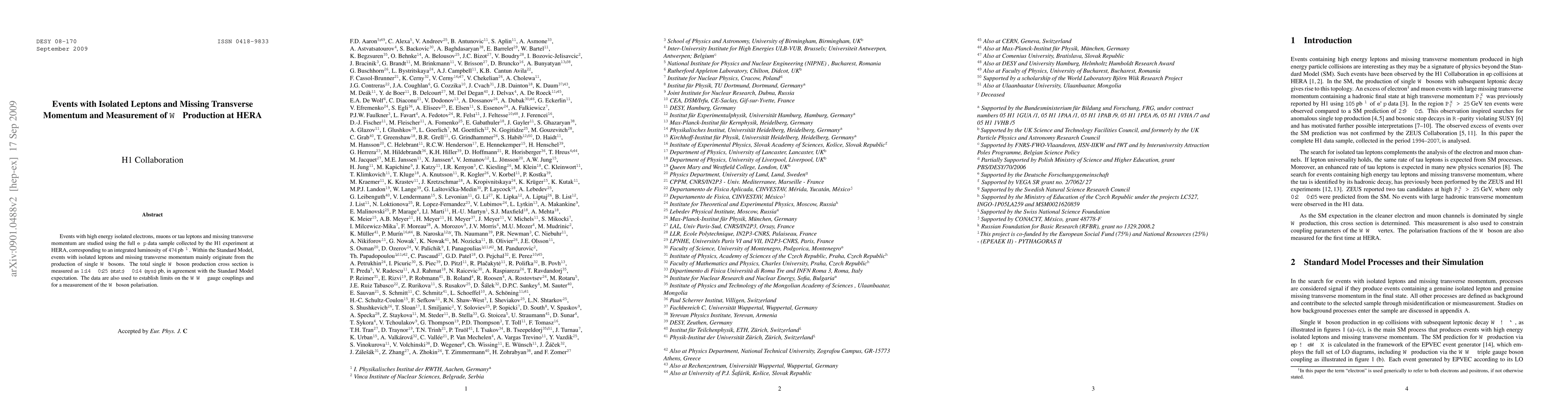 This paper reports on the measurement of single W boson production cross section using events with isolated leptons and missing transverse momentum from the H1 experiment at HERA, yielding a cross section of 1.14 ± 0.25 (stat.) ± 0.14 (sys.) pb, consistent with Standard Model predictions. Additionally, it sets limits on WWγ gauge couplings and measures W boson polarization.