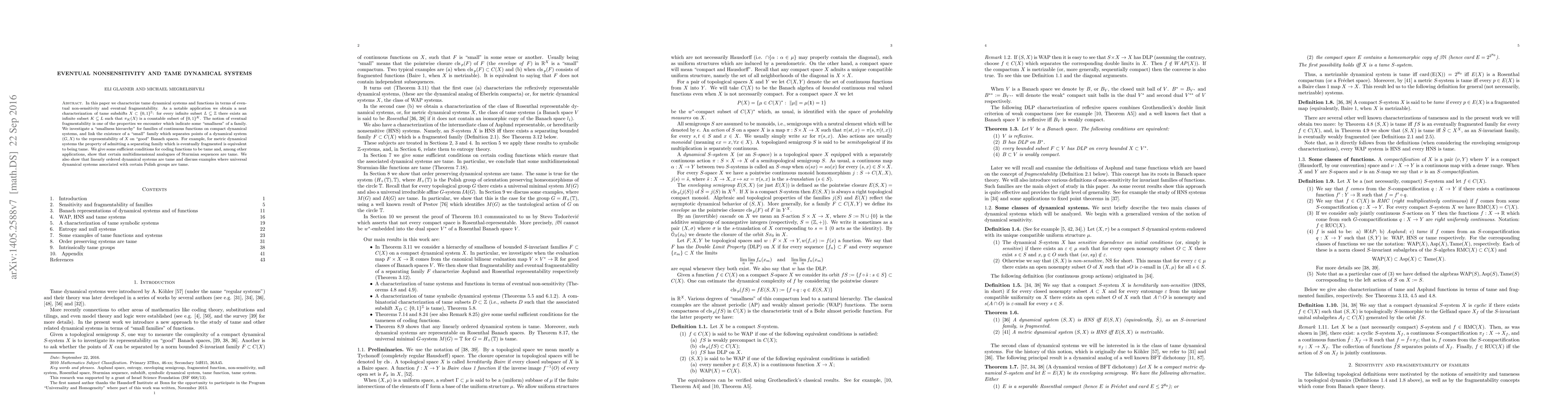 In this paper we characterize tame dynamical systems and functions in terms of eventual non-sensitivity and eventual fragmentability. As a notable application we obtain a neat characterization of tame subshifts $X \subset \{0,1\}^{\mathbb Z}$: for every infinite subset $L \subseteq {\mathbb Z}$ there exists an infinite subset $K \subseteq L$ such that $\pi_{K}(X)$ is a countable subset of $\{0,1\}^K$. The notion of eventual fragmentability is one of the properties we encounter which indicate some "smallness" of a family. We investigate a "smallness hierarchy" for families of continuous functions on compact dynamical systems, and link the existence of a "small" family which separates points of a dynamical system $(G,X)$ to the representability of $X$ on "good" Banach spaces. For example, for metric dynamical systems the property of admitting a separating family which is eventually fragmented is equivalent to being tame. We give some sufficient conditions for coding functions to be tame and, among other applications, show that certain multidimensional analogues of Sturmian sequences are tame. We also show that linearly ordered dynamical systems are tame and discuss examples where some universal dynamical systems associated with certain Polish groups are tame.