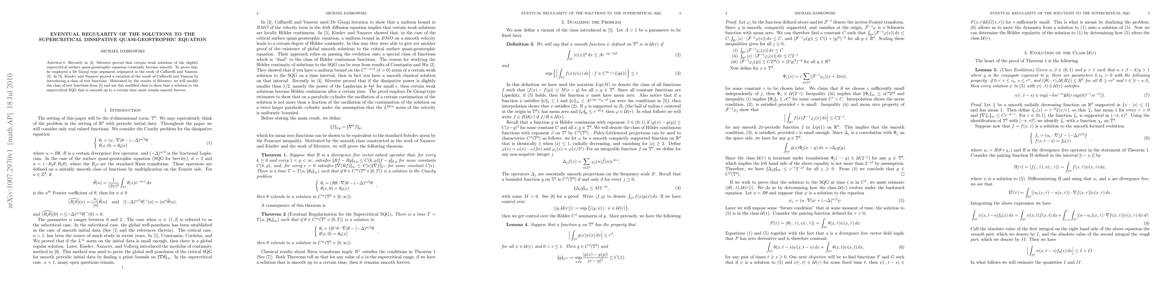 Silvestre demonstrated that weak solutions to the supercritical surface quasi-geostrophic equation eventually become smooth using a De Giorgi type argument. The authors build on this work by modifying test functions from Kiselev and Nazarov to show that any smooth solution to the supercritical SQG remains smooth indefinitely.