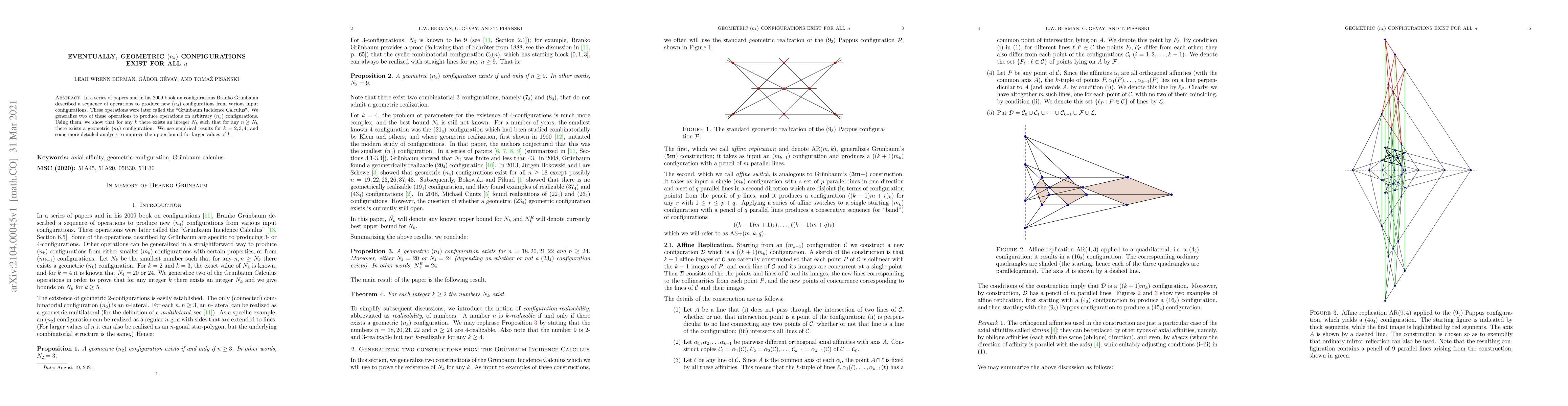 Researchers prove that for any geometric configuration with k dimensions, there exists a minimum number of points N_k such that any n-dimensional configuration can be generated from it. This discovery generalizes Grunbaum's earlier work on configurations.