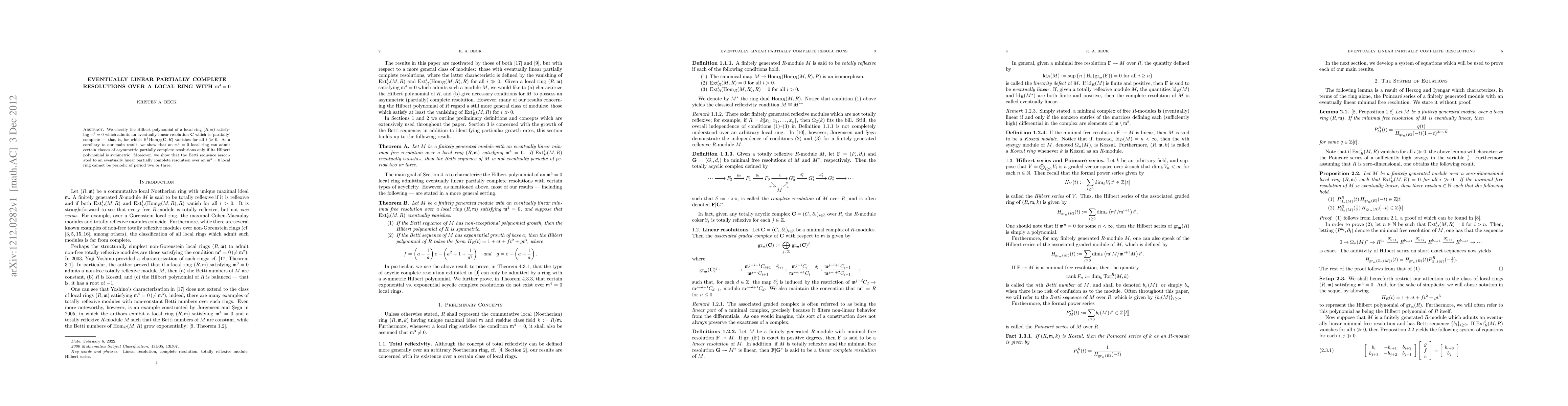 Summary: The paper classifies the Hilbert polynomial of local rings where the maximal ideal raised to the fourth power is zero, showing they can have eventually linear, partially complete resolutions with certain symmetry properties. It also proves that such rings cannot have periodic Betti sequences of periods two or three.
