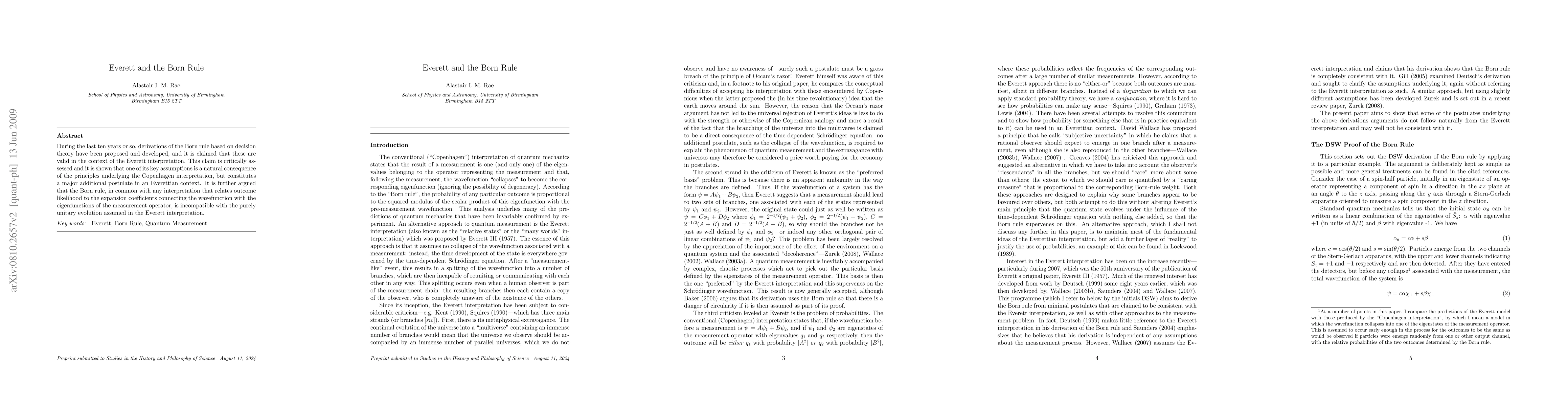 This paper critically examines derivations of the Born rule based on decision theory within the Everett interpretation, demonstrating that a key assumption, valid for the Copenhagen interpretation, is inconsistent with Everett's. It concludes that interpretations linking outcome likelihood to expansion coefficients are incompatible with the Everett interpretation.