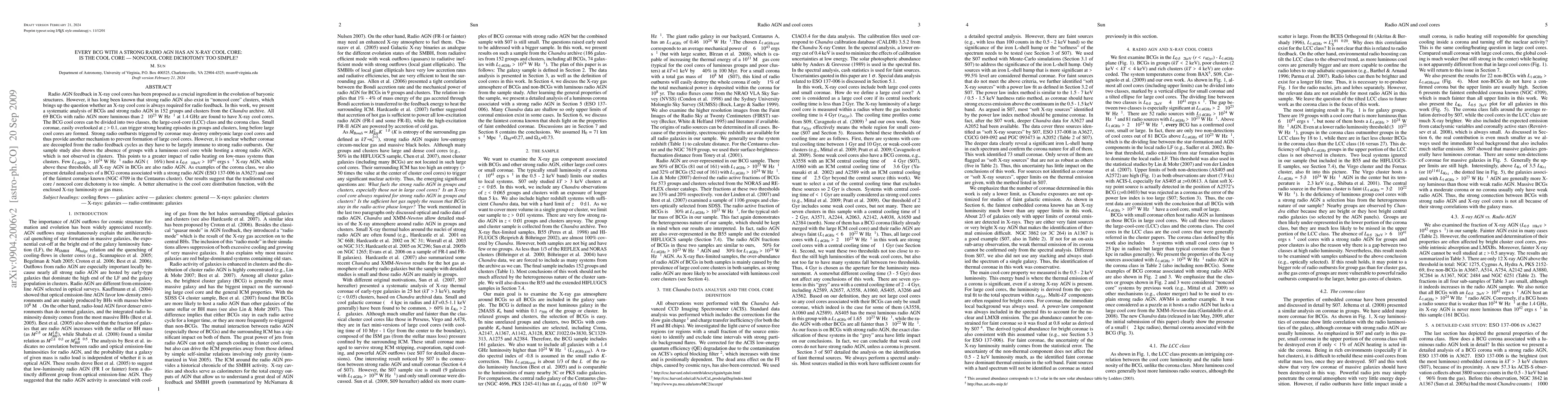 This research investigates the relationship between strong radio AGN in central galaxies (BCGs) and the presence of X-ray cool cores in galaxy clusters, finding that all BCGs with luminous radio AGN possess cool cores. It challenges the simplicity of the cool core/noncool core dichotomy, proposing instead a cool core distribution function based on X-ray luminosity or gas mass.