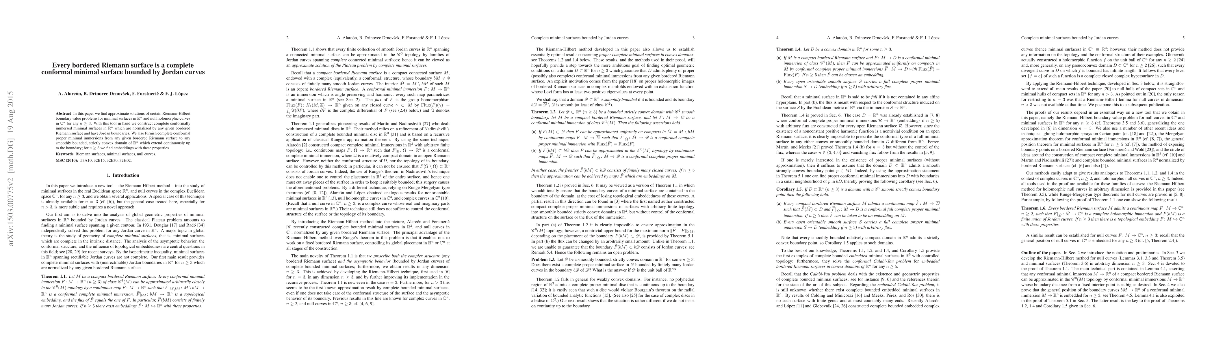 This paper constructs complete conformal minimal surfaces in $\mathbb{R}^n$ that are bounded by Jordan curves, using approximate solutions to Riemann-Hilbert boundary value problems, and extends these surfaces from any given bordered Riemann surface to smoothly bounded, strictly convex domains.