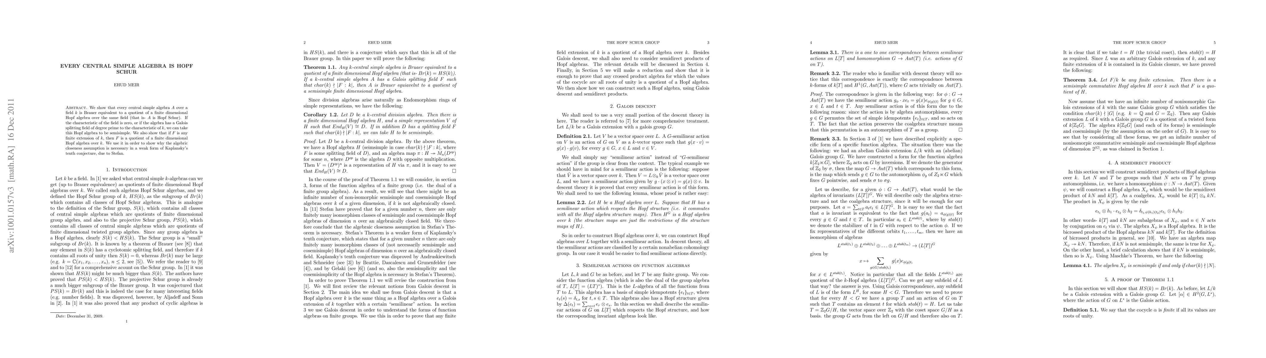 This paper demonstrates that every central simple algebra over a field is Brauer equivalent to a quotient of a finite-dimensional Hopf algebra, termed Hopf Schur. For fields of characteristic zero or with certain splitting fields, the Hopf algebra can be semisimple.
