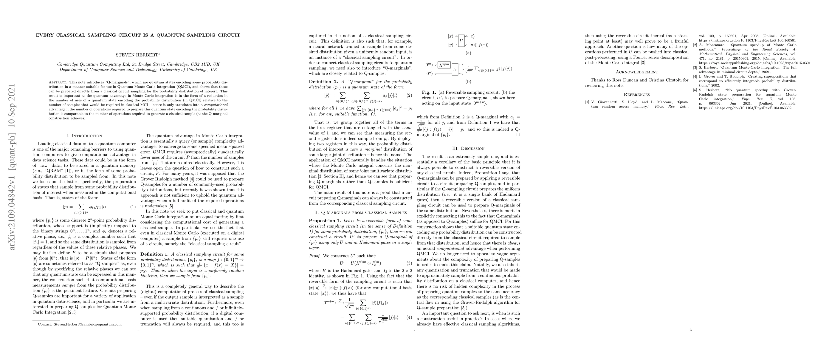 A new method called Q-marginals allows classical sampling circuits to be converted into quantum sampling circuits, potentially reducing the computational advantage of quantum Monte Carlo integration.
