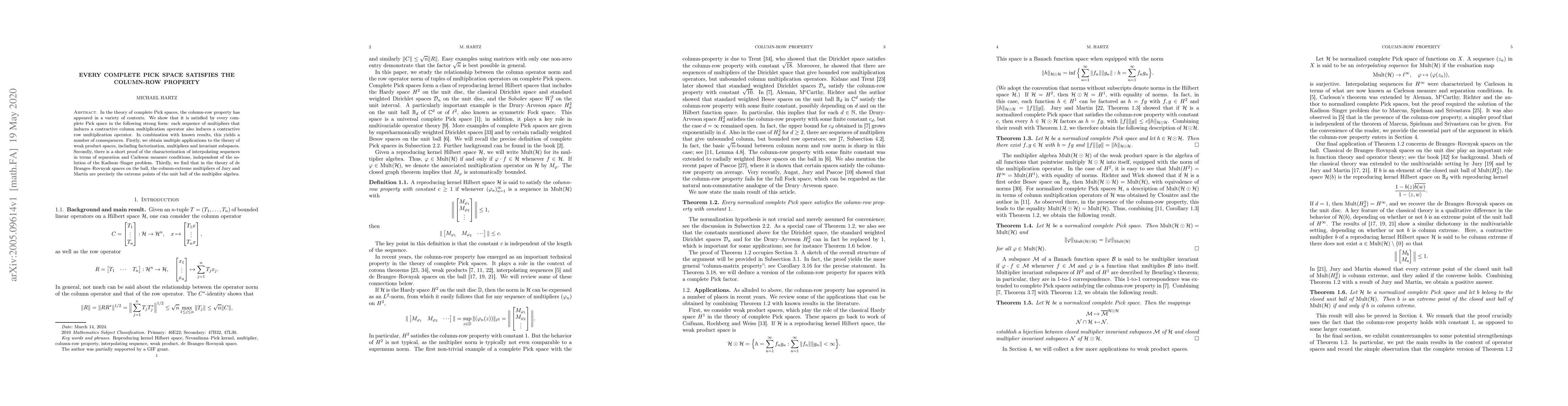 In the theory of complete Pick spaces, the column-row property has appeared in a variety of contexts. We show that it is satisfied by every complete Pick space in the following strong form: each sequence of multipliers that induces a contractive column multiplication operator also induces a contractive row multiplication operator. In combination with known results, this yields a number of consequences. Firstly, we obtain multiple applications to the theory of weak product spaces, including factorization, multipliers and invariant subspaces. Secondly, there is a short proof of the characterization of interpolating sequences in terms of separation and Carleson measure conditions, independent of the solution of the Kadison-Singer problem. Thirdly, we find that in the theory of de Branges-Rovnyak spaces on the ball, the column-extreme multipliers of Jury and Martin are precisely the extreme points of the unit ball of the multiplier algebra.