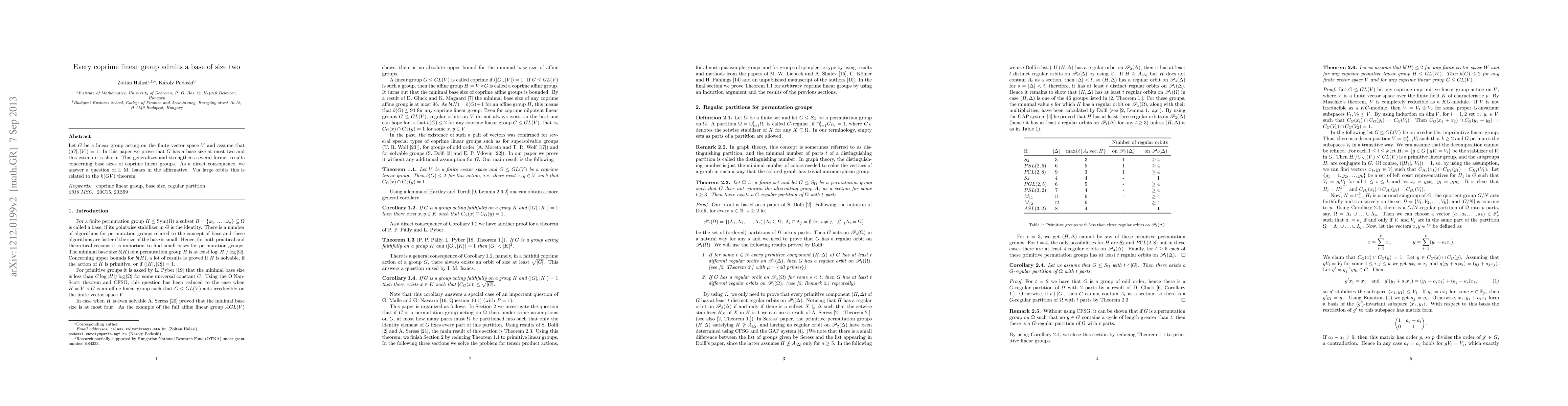 Every coprime linear group can be represented with a base of size two, strengthening previous results and answering a question by I.M. Isaacs in the affirmative.