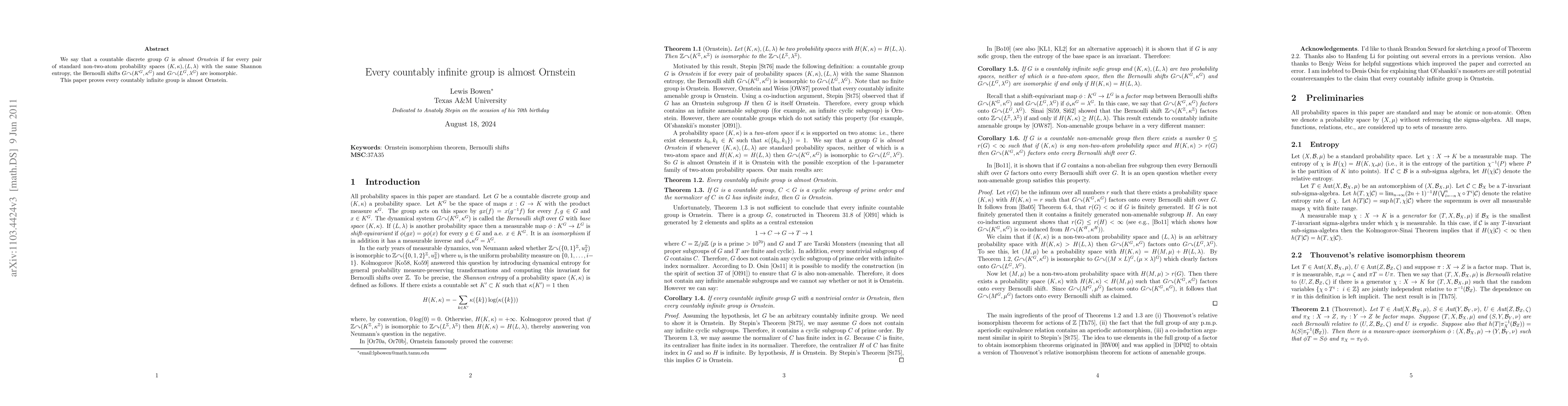 This paper proves that every countably infinite group $G$ is almost Ornstein, meaning that for any two standard non-two-atom probability spaces with equal Shannon entropy, the Bernoulli shifts generated by $G$ are isomorphic. This result extends the concept of Ornstein isomorphism to all countable groups.