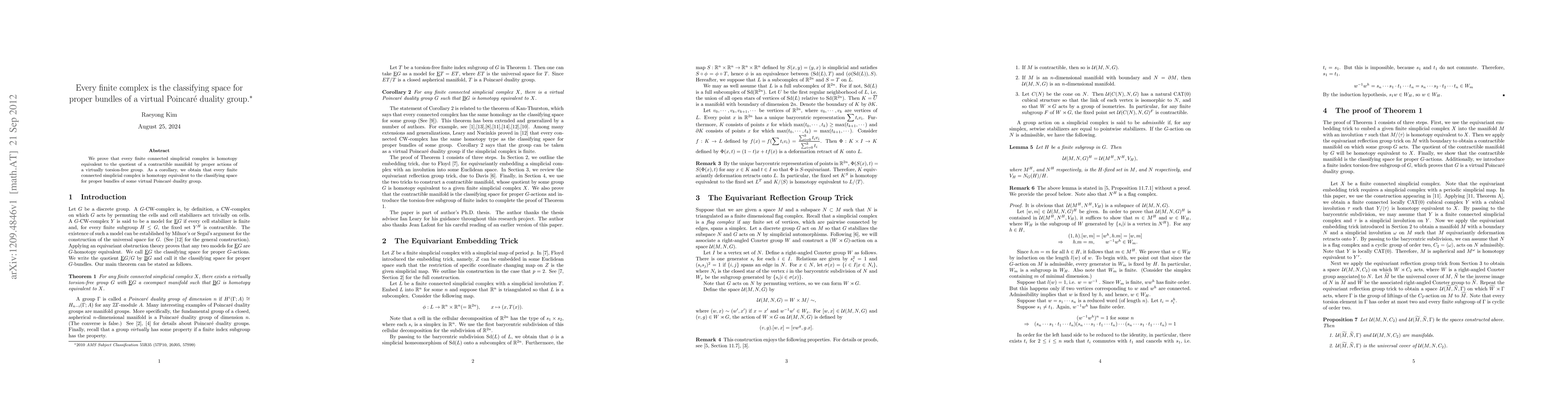 This paper demonstrates that any finite connected simplicial complex is homotopy equivalent to the classifying space for proper bundles associated with a virtual Poincaré duality group, derived from the manifold quotiented by proper group actions. This reveals a fundamental connection between finite complexes and virtual Poincaré duality groups.
