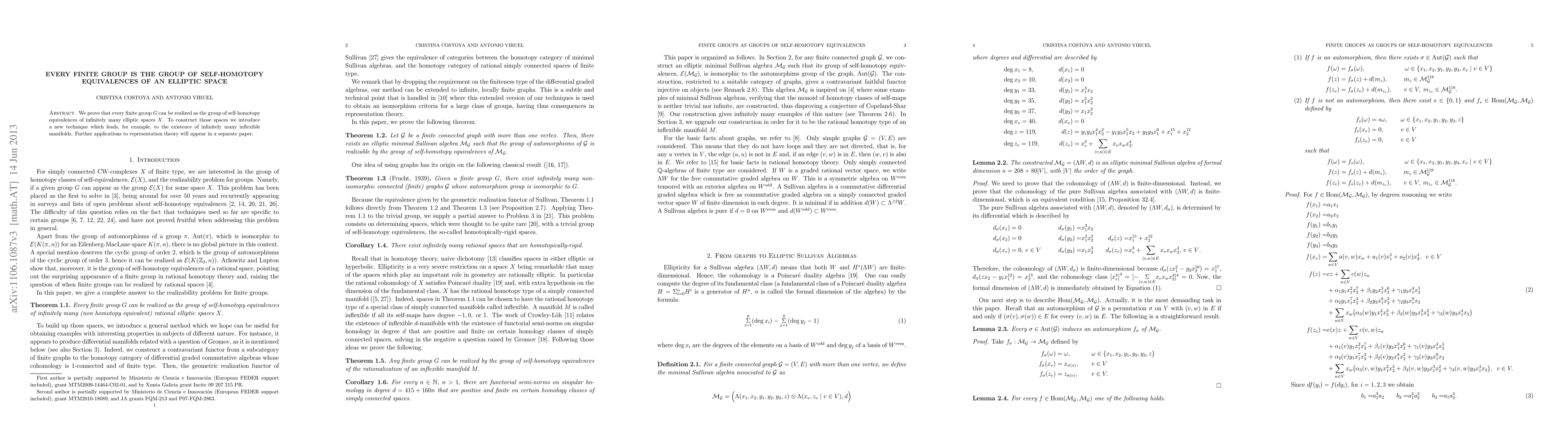 This paper demonstrates that any finite group $G$ can serve as the group of self-homotopy equivalences for an infinite collection of elliptic spaces $X$, which can additionally be chosen as the rationalization of an inflexible compact simply connected manifold.